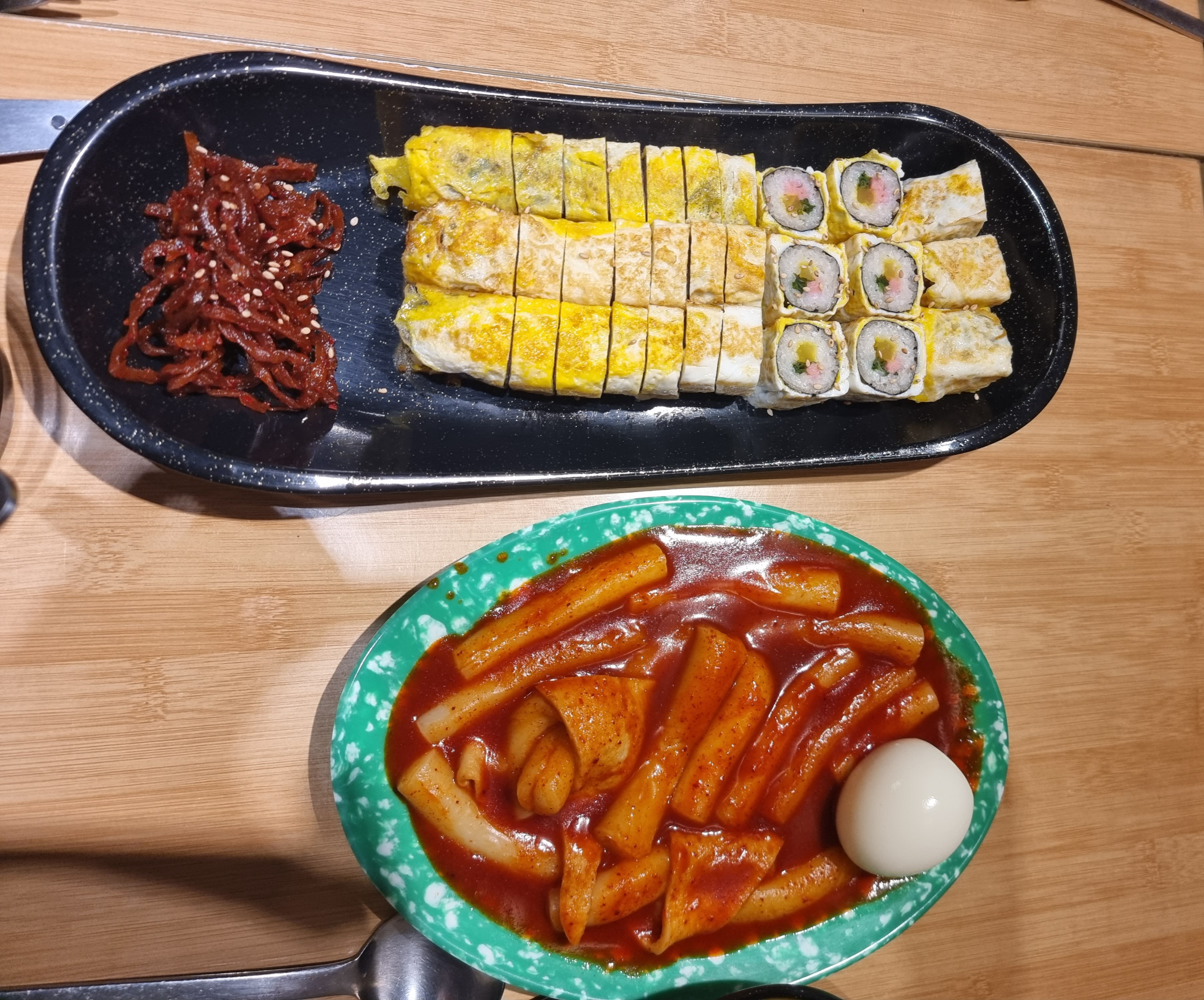 저희는 옛날 떡볶이 1 , 노란 김밥 1 , 무침 튀김만두 1 , 삶은 계란 2 , 오징어튀김 1을 주문하였습니다~