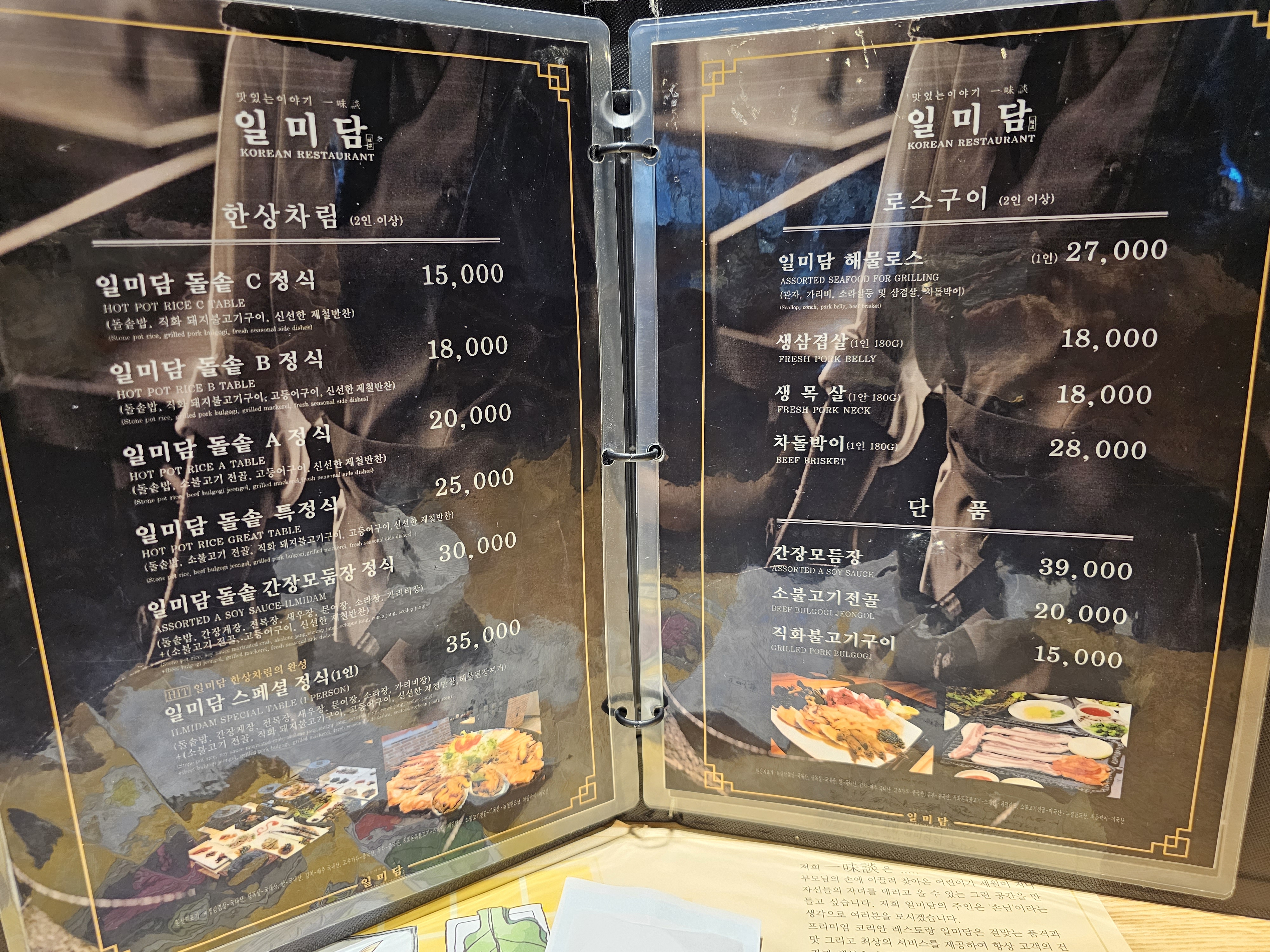 일미담스페셜 정식 2인 해서 7만 원 나왔고