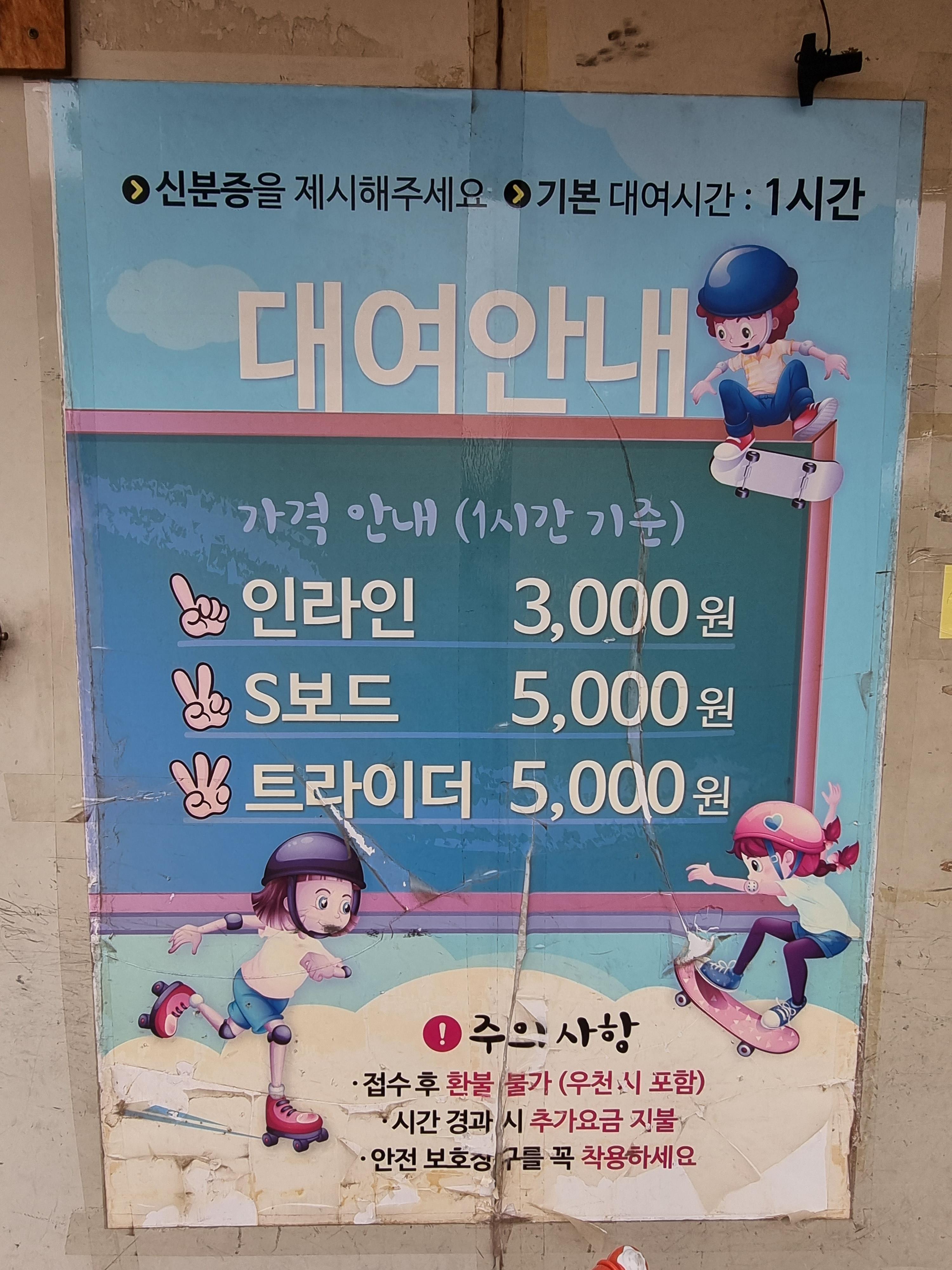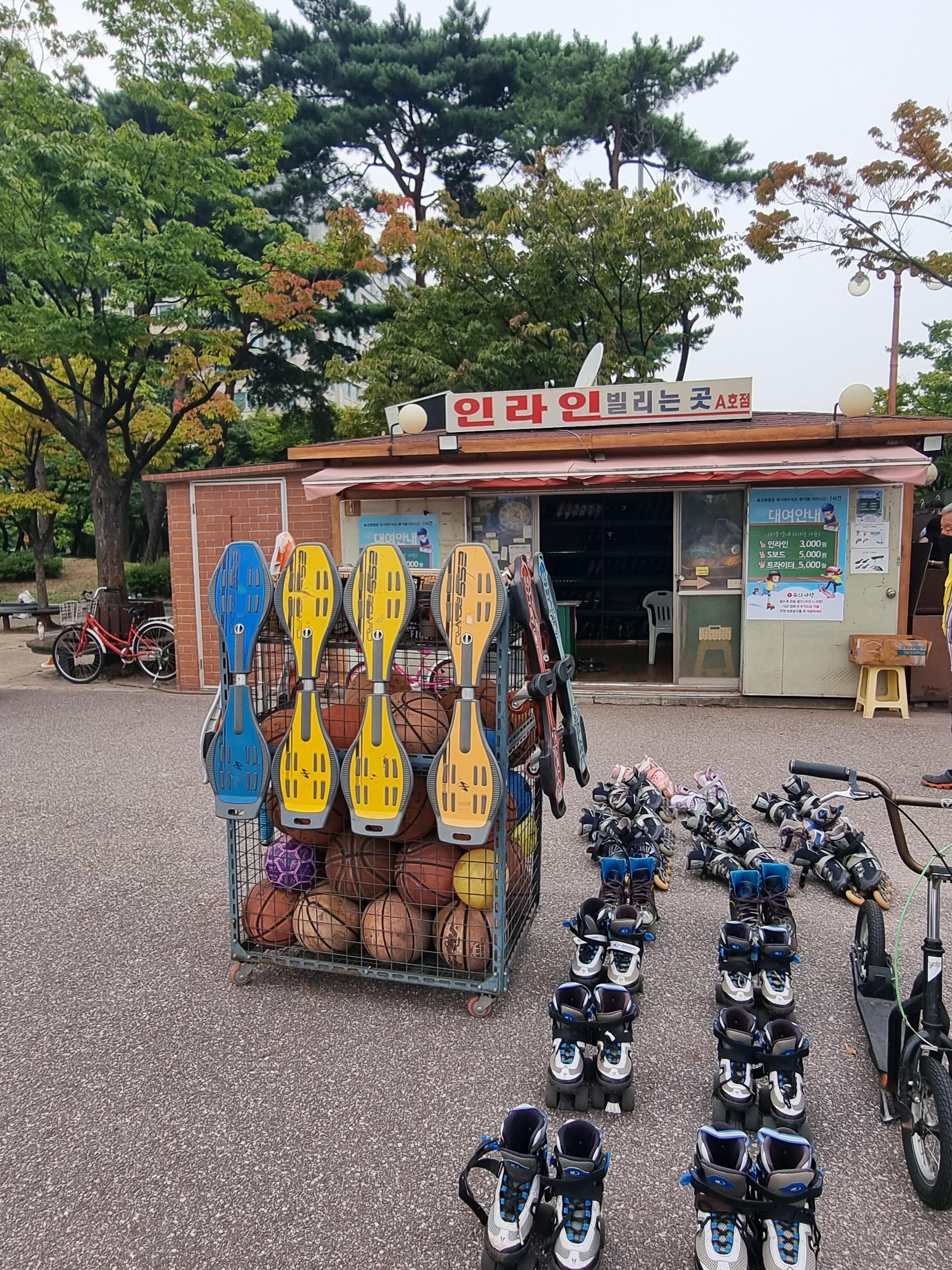 이렇게 앞에 인라인스케이트 외 다른 것도 대여할 수 있고 건물 안에는 인라인이 더 있습니다 ~