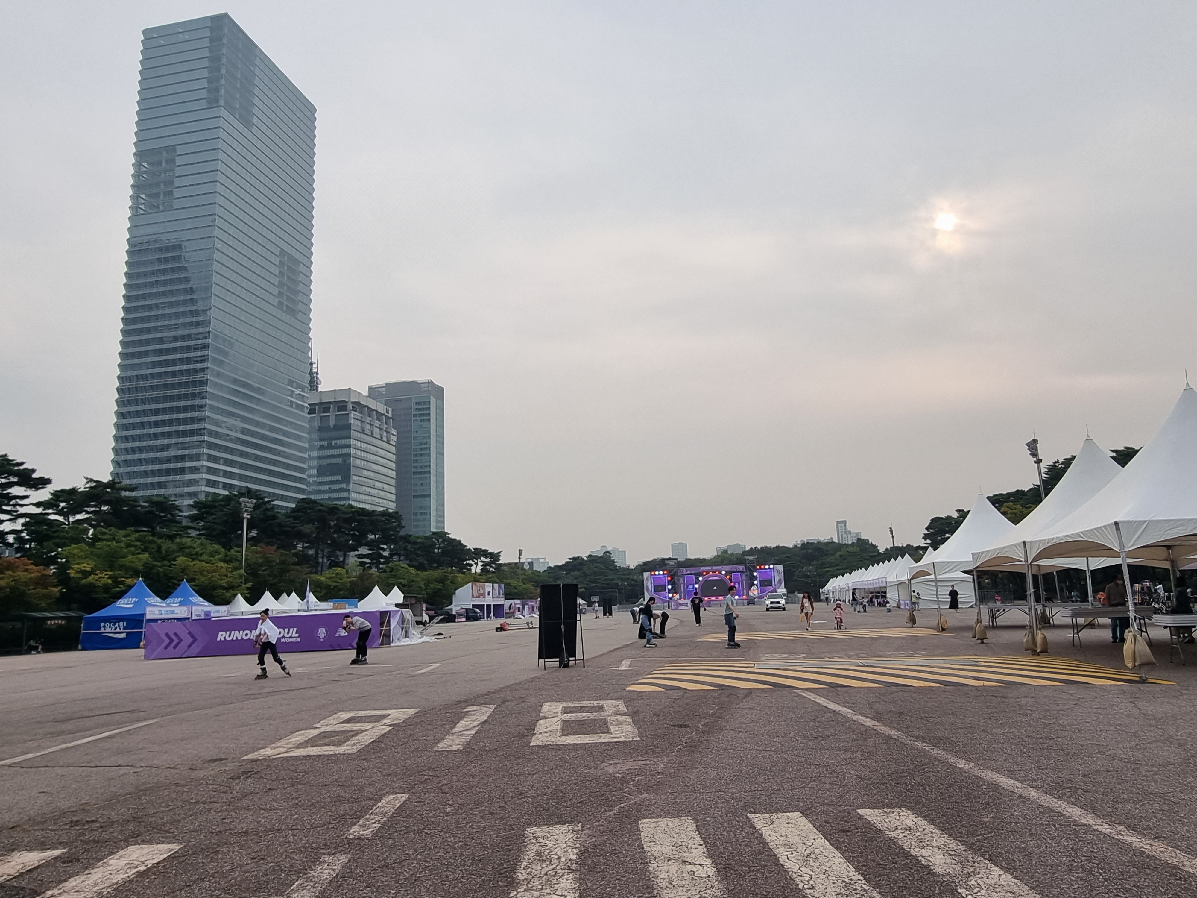 인라인을 대여하여 탈 수 있는 장소인데 이날은 아침에 마라톤 행사가 있었습니다