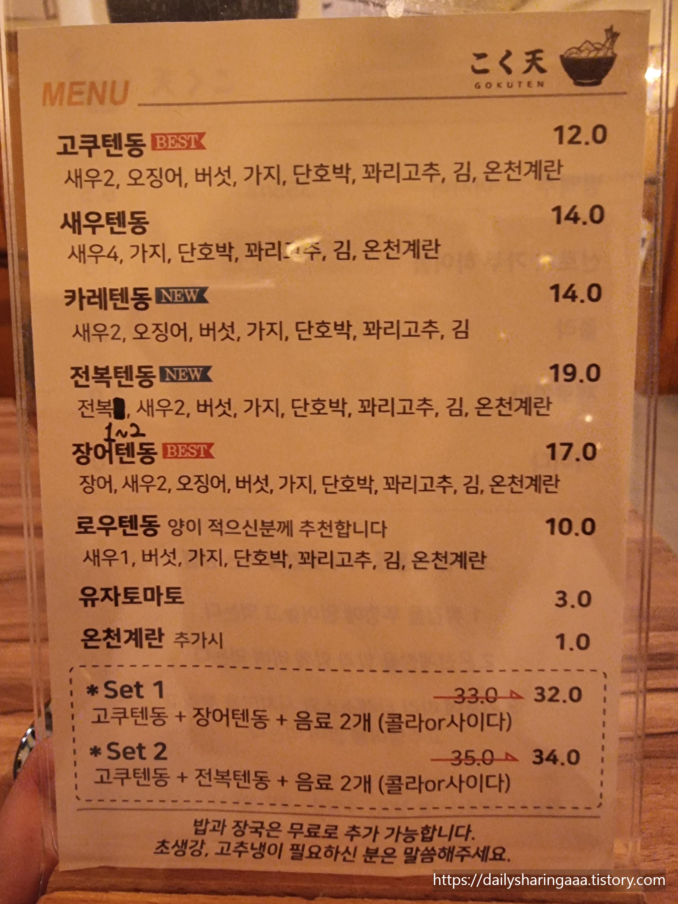 제일 기본인 고쿠 텐동 2인분