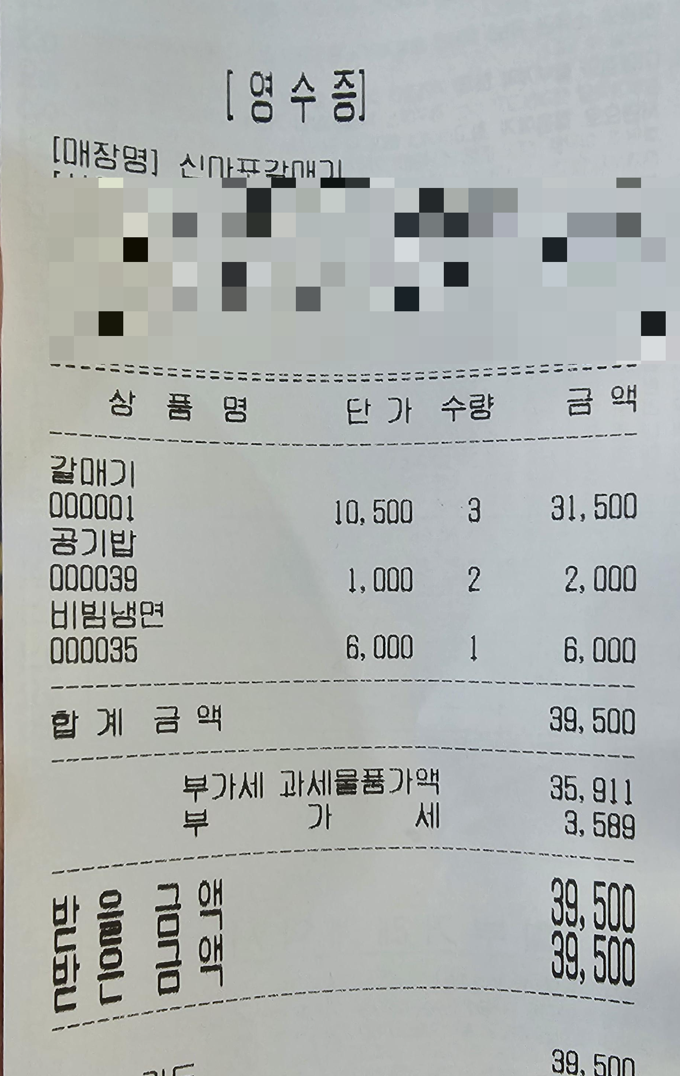 해서 총 3만 9천5백 원 나왔습니다 ~