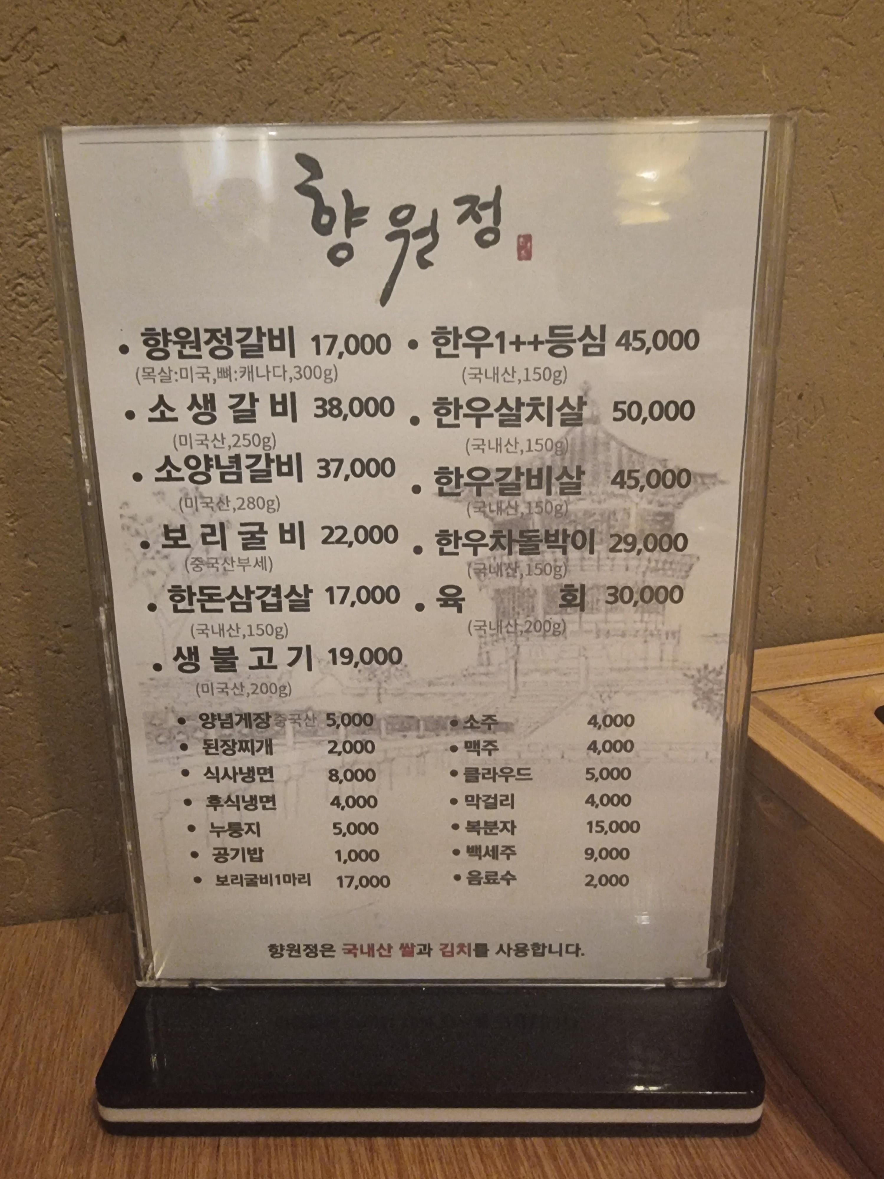 저희는 향원정 갈비 3인분과 공깃밥 2개 후식냉면 1개를