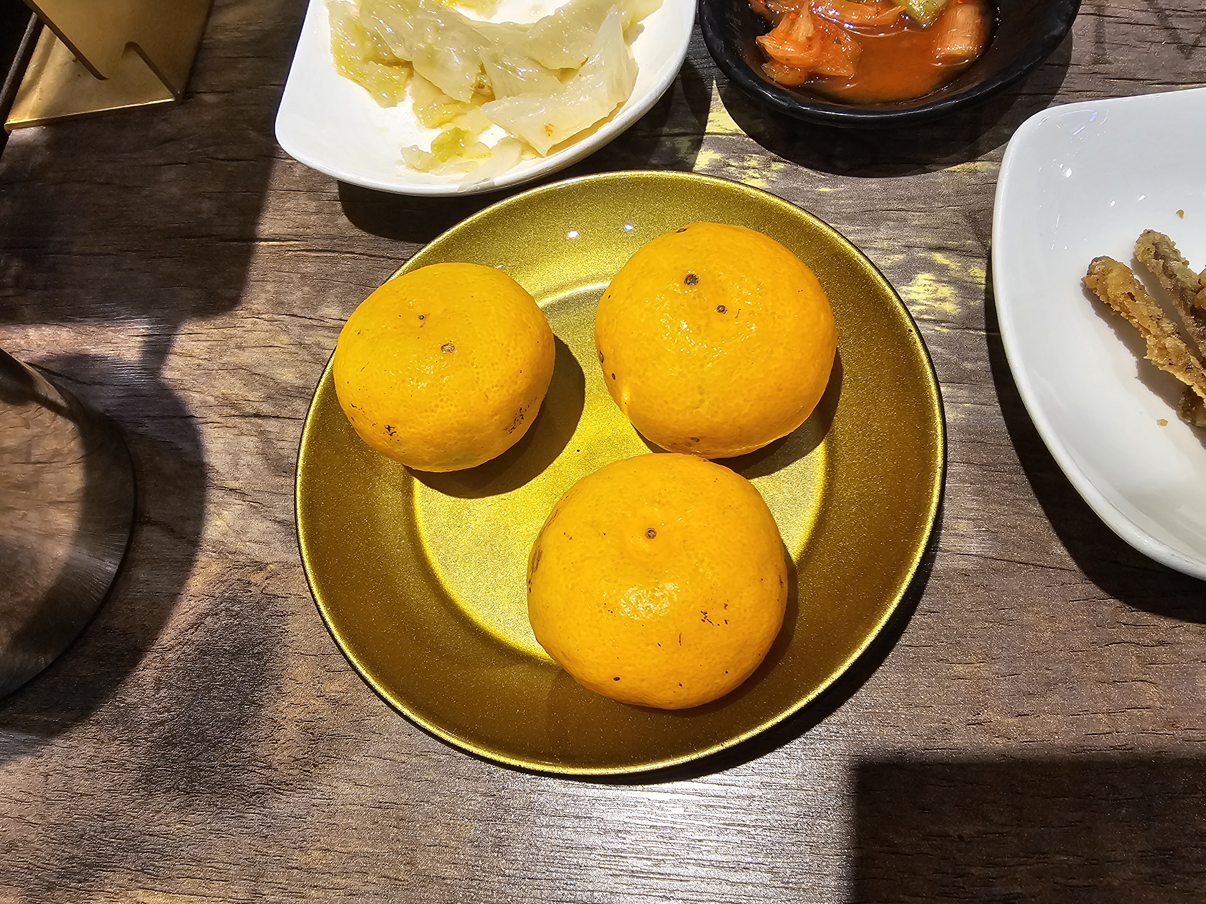 마지막으로 후식으로 나온 귤과 영수증 사진입니다 ~
