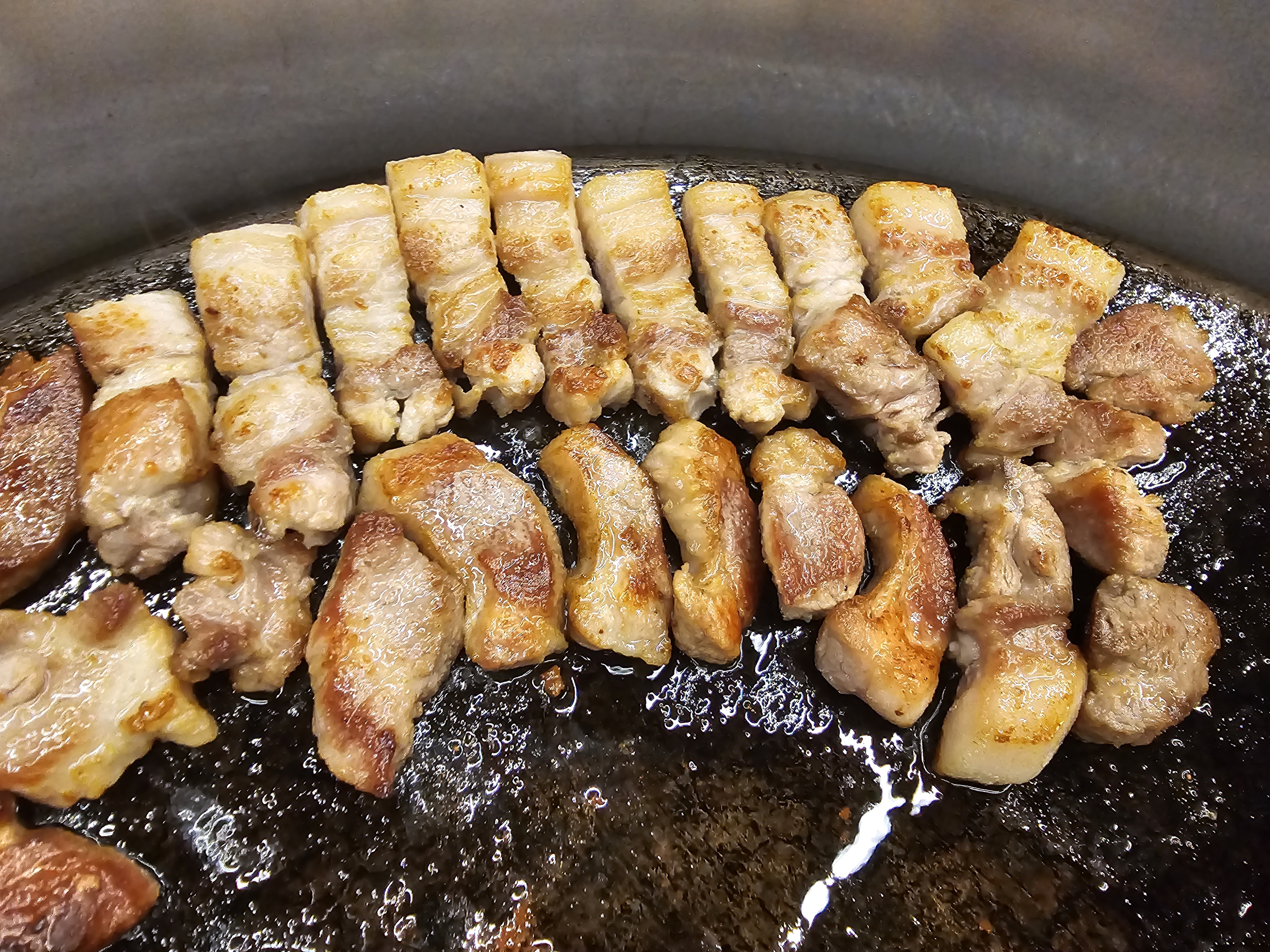 전체적인 맛은 솥뚜껑으로 구운 고기답게