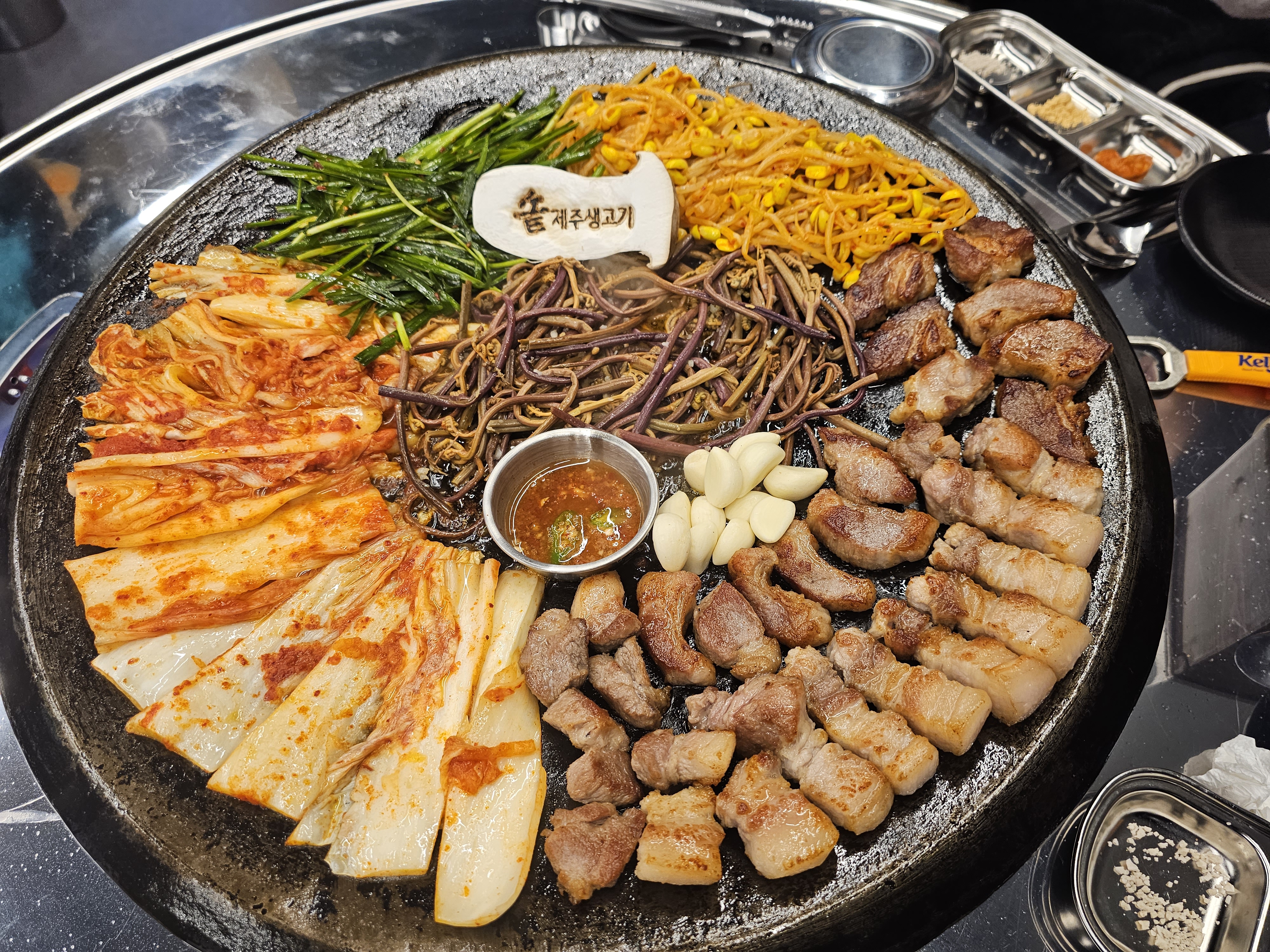 전체적인 맛은 솥뚜껑으로 구운 고기답게