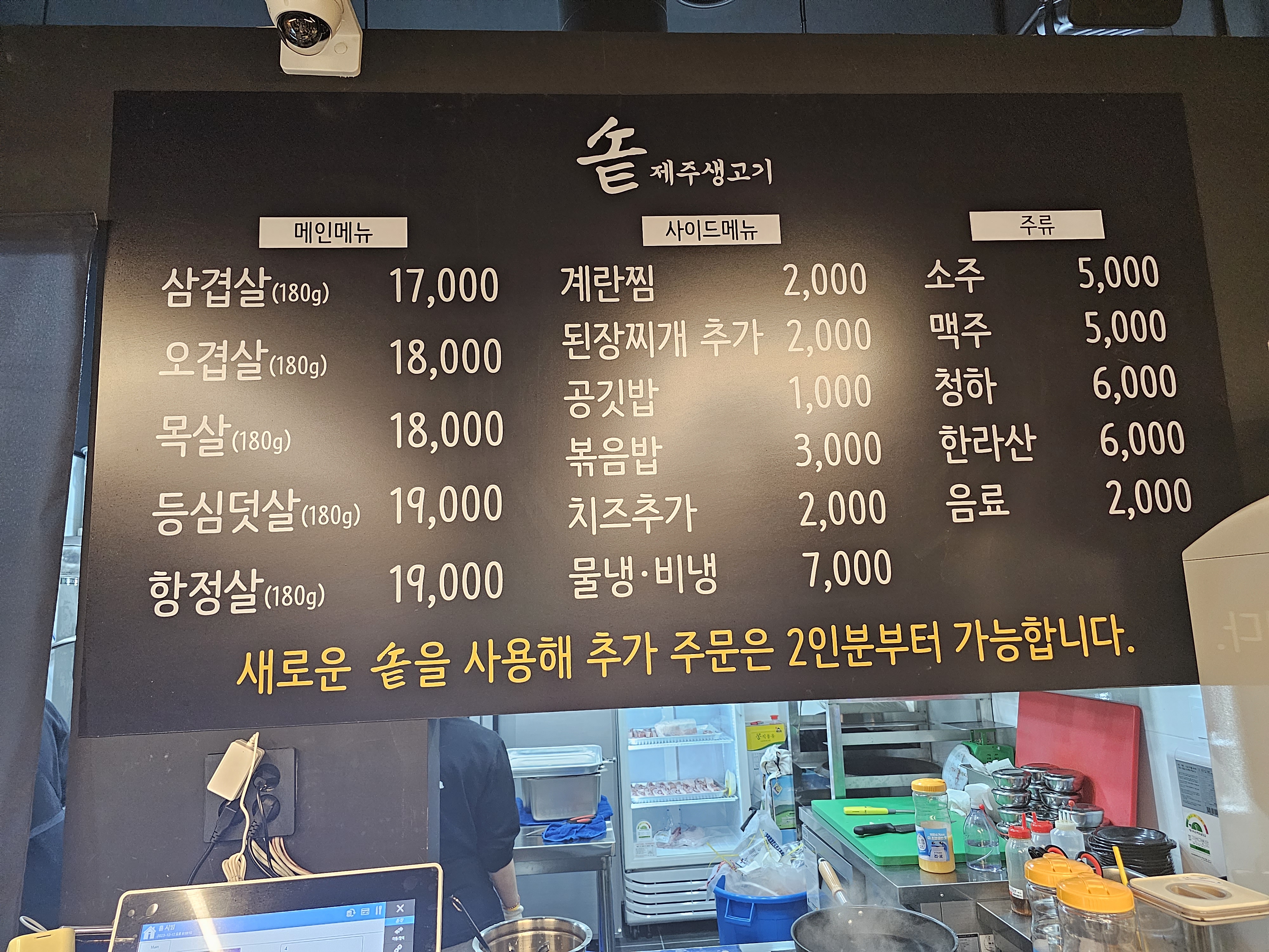 상가에 있는 제주생고기 전문점 [솥]!!입니다.