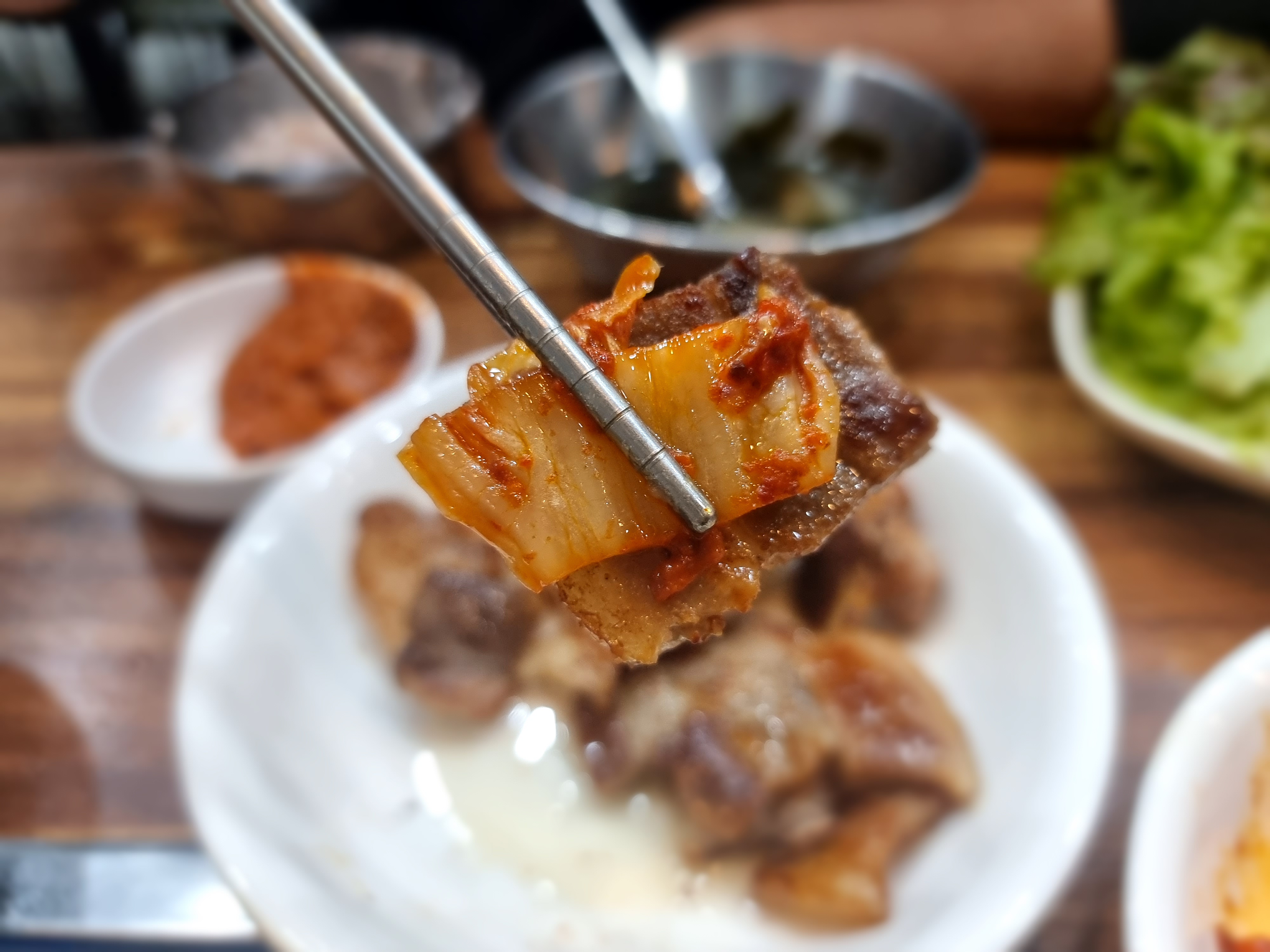 다른 삼겹살 집에서도 김치를 구워 먹으면 그저 그런데..