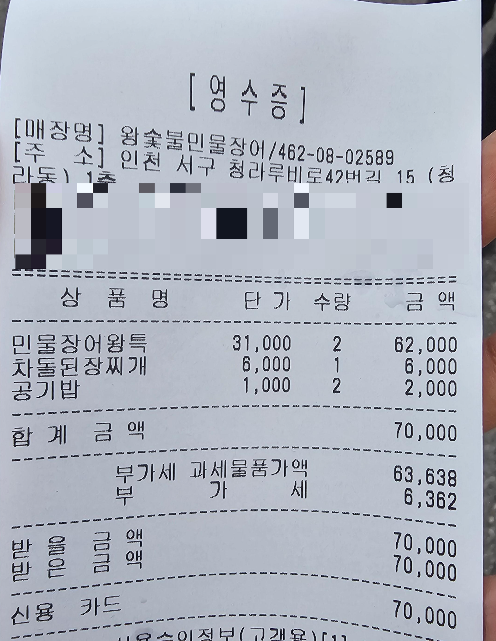 공기밥 1 해서 총 7만 원 나왔습니다!!