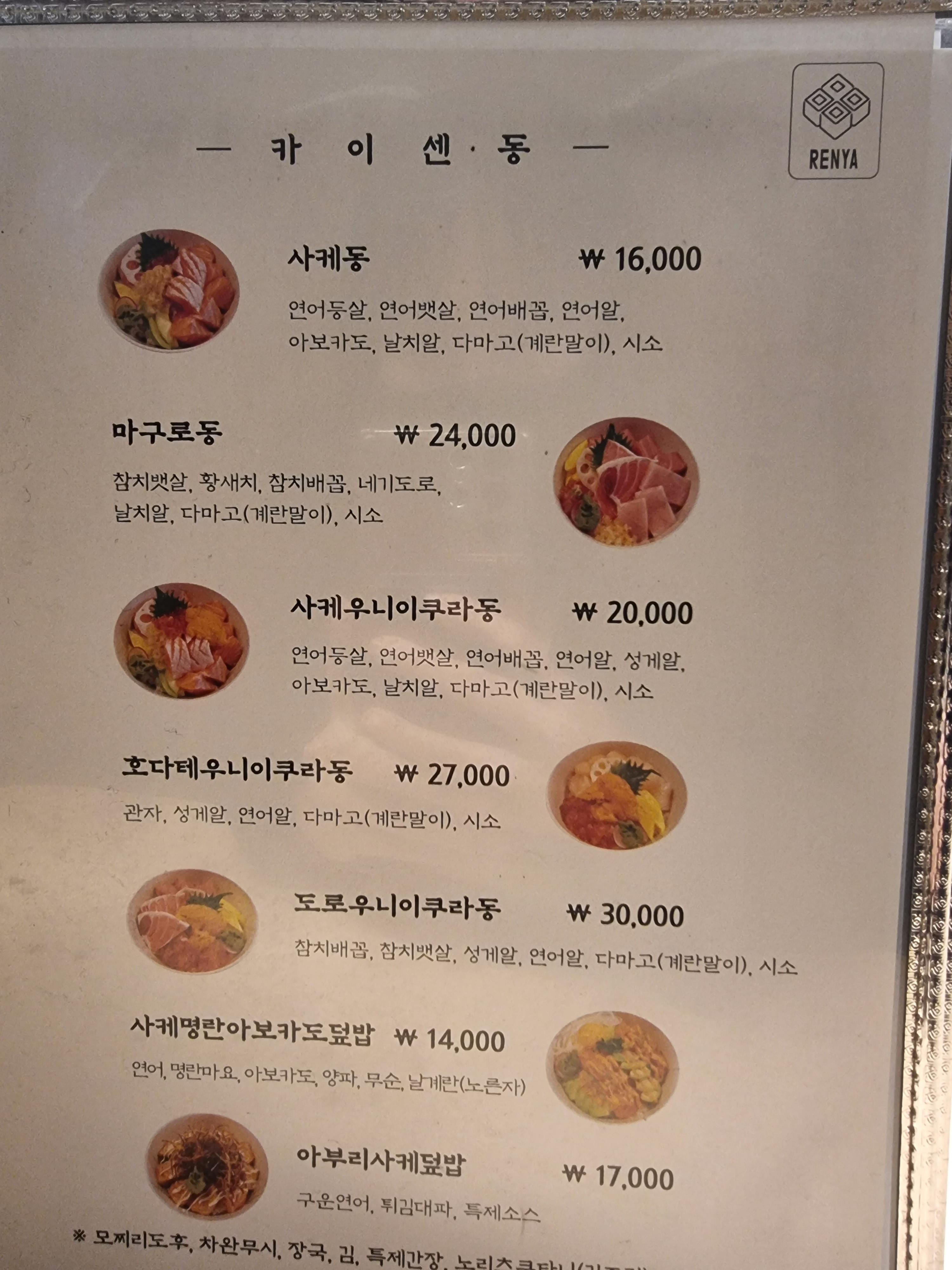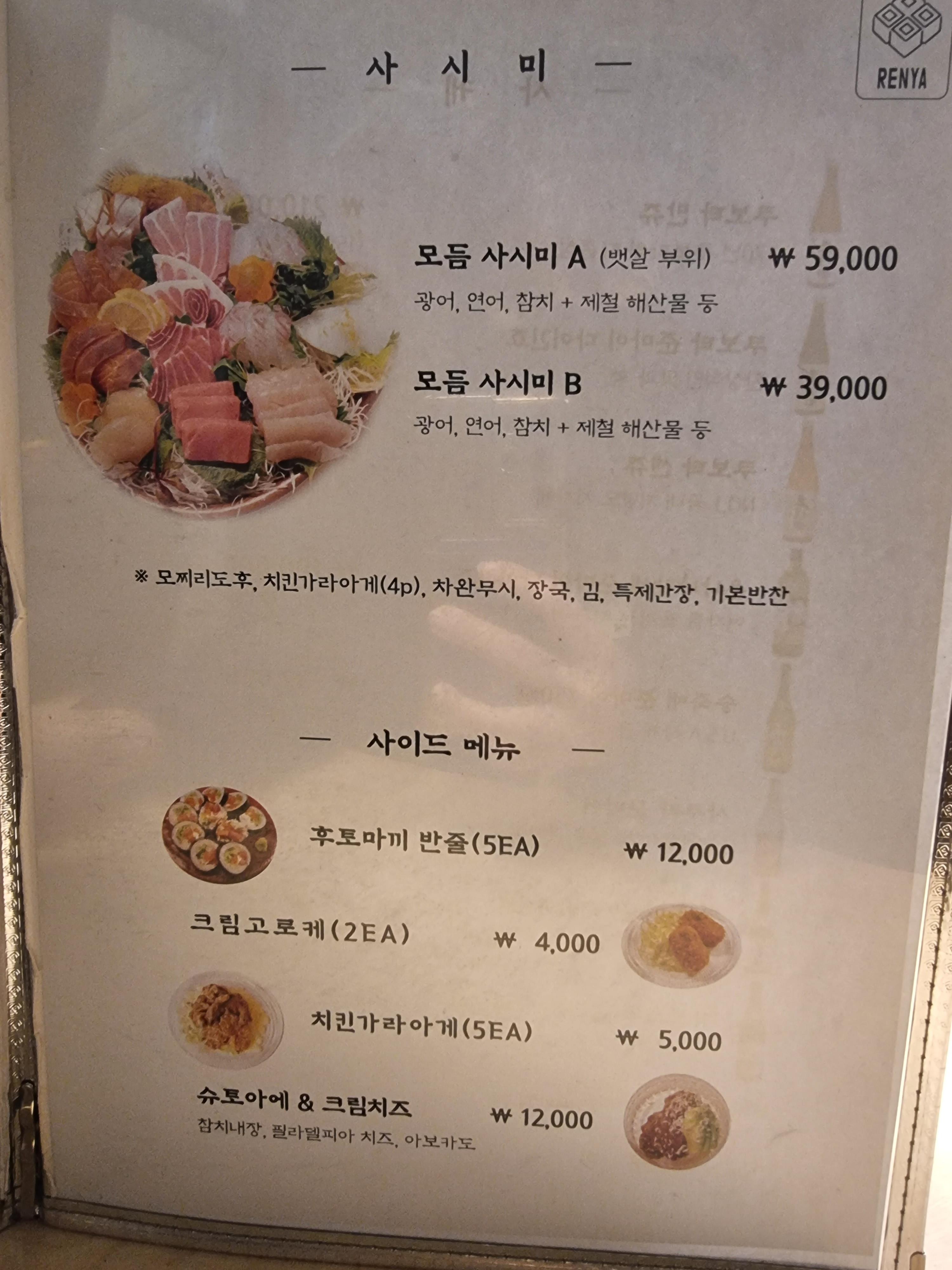 렌야 초밥은 2천 , 어린이초밥 1천 원 인상되었습니다 ~