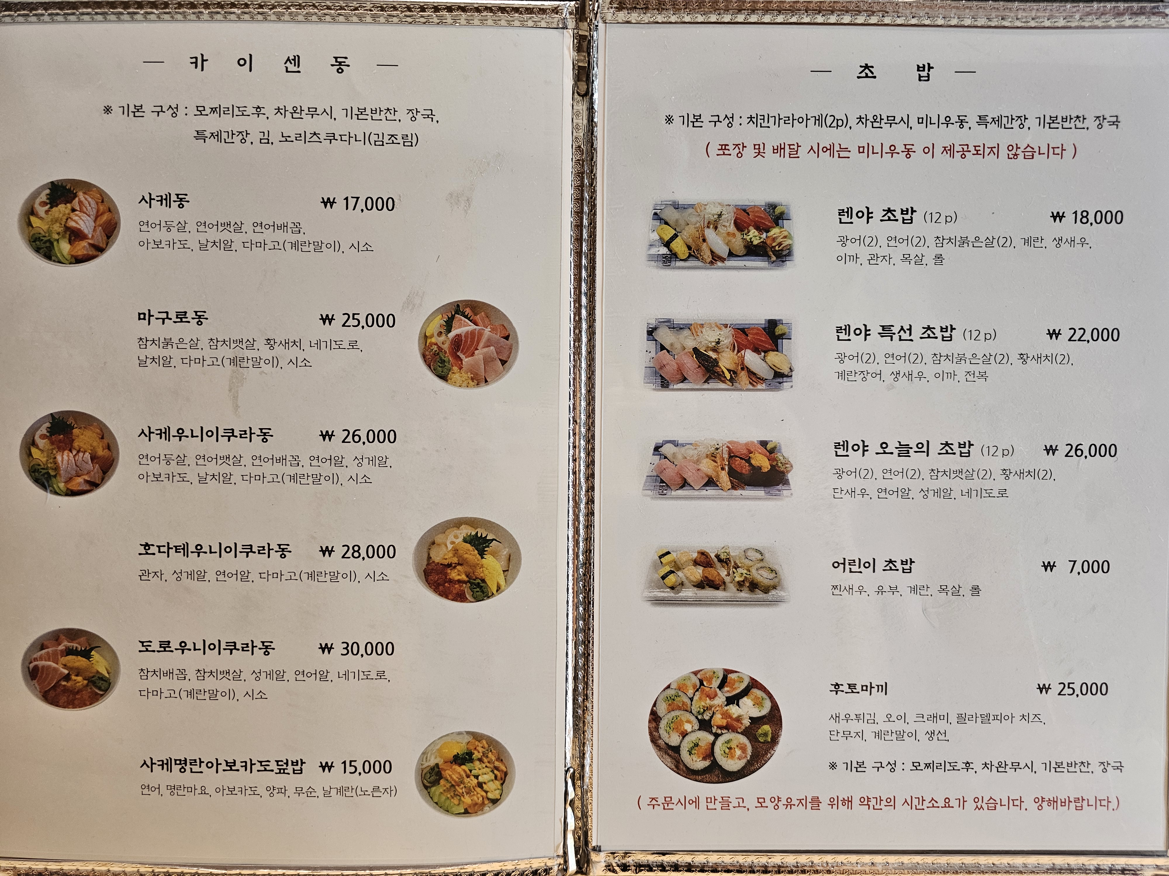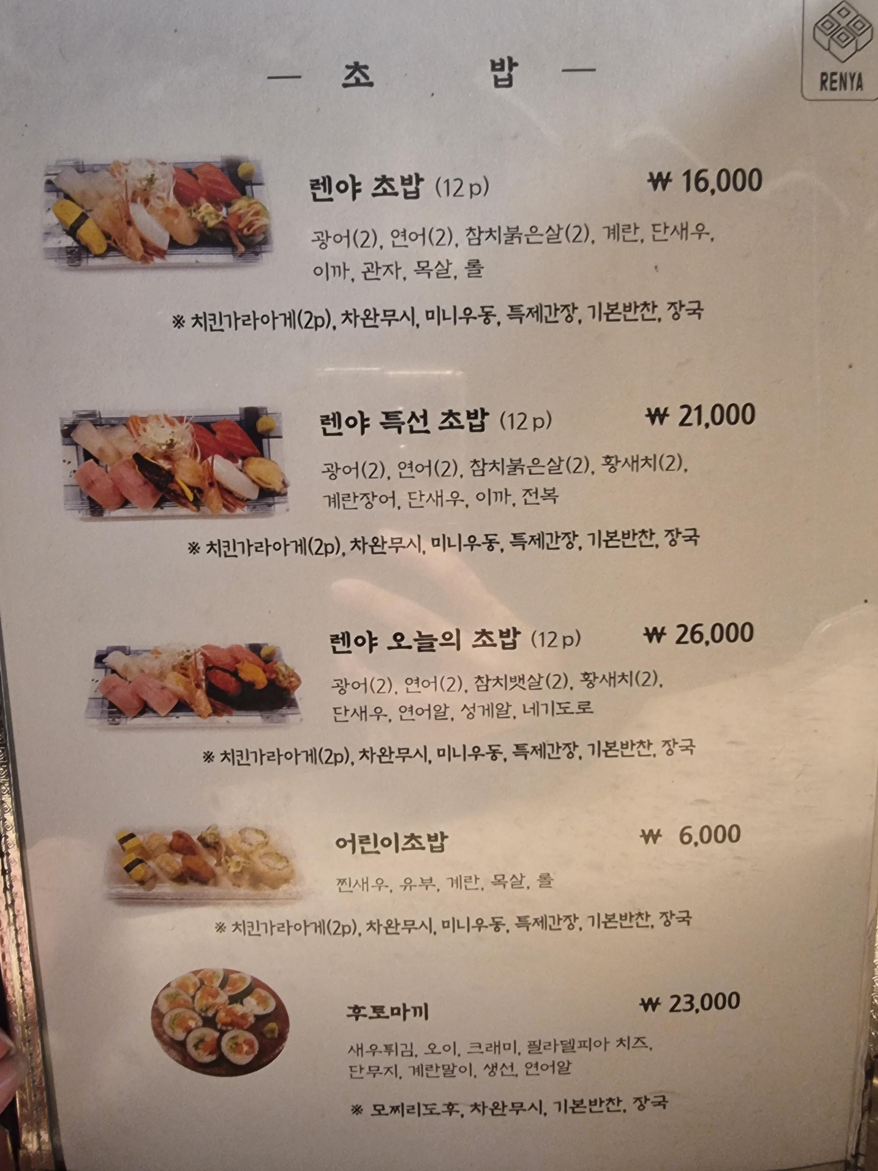 렌야 초밥은 2천 , 어린이초밥 1천 원 인상되었습니다 ~