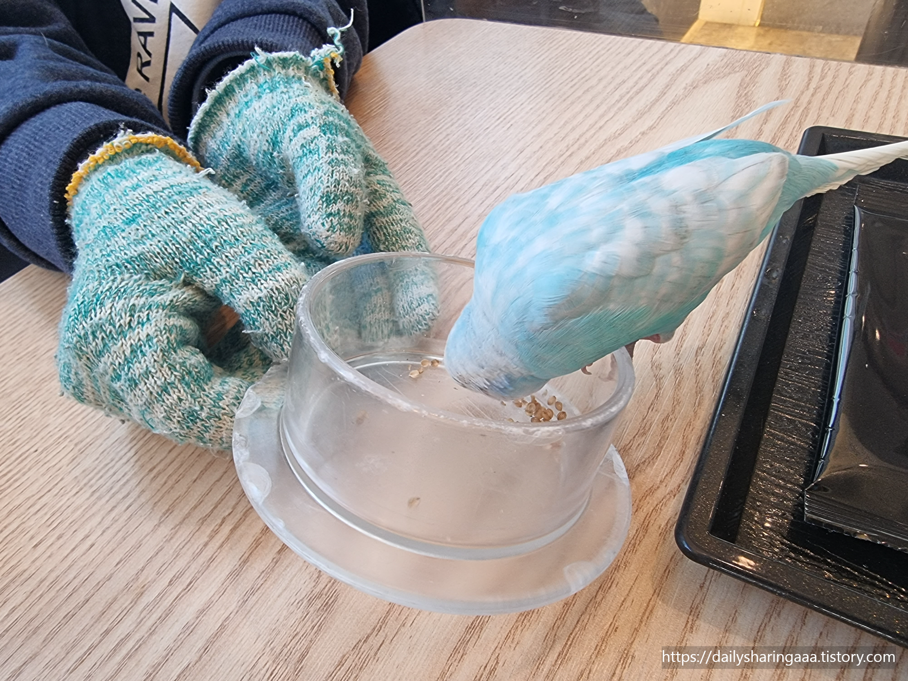 그 앵무새를 테이블로 데려와 주십니다 ~