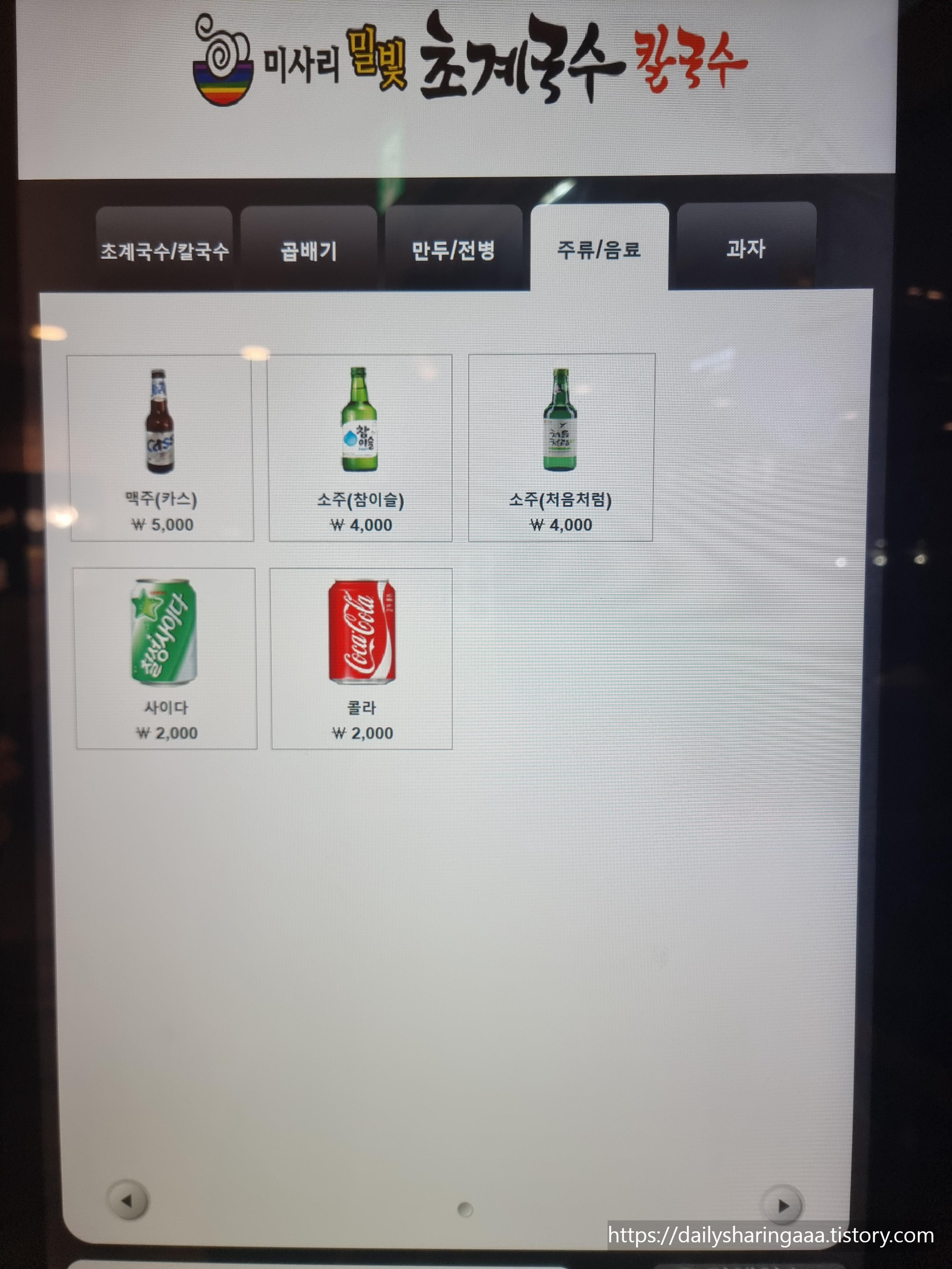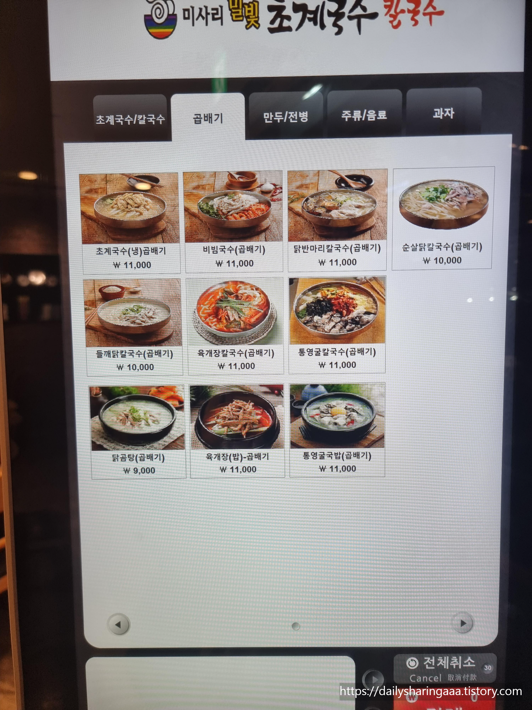 (곱배기는 메뉴탭이 따로 있습니다)