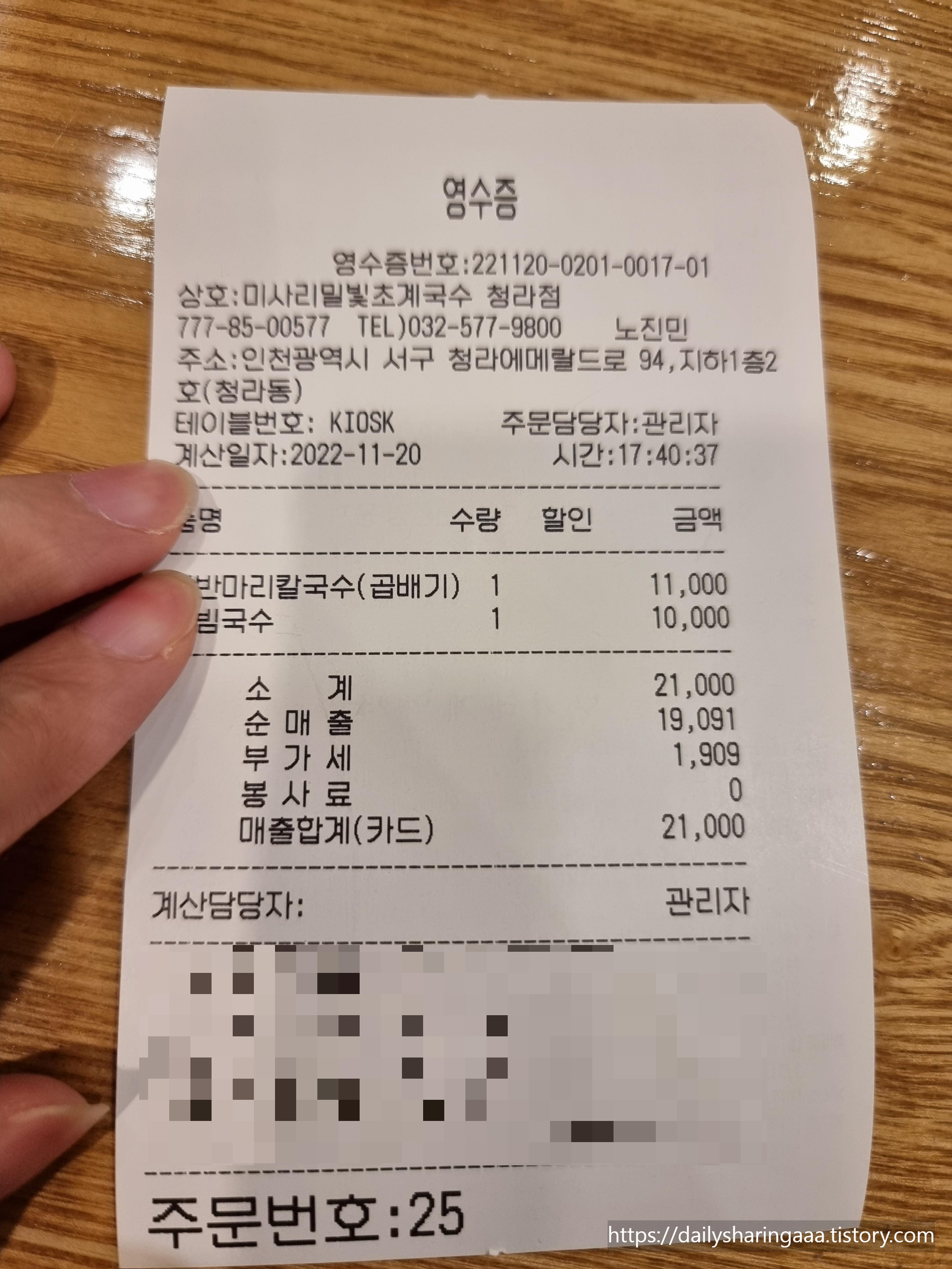 마지막 영수증 사진입니다~