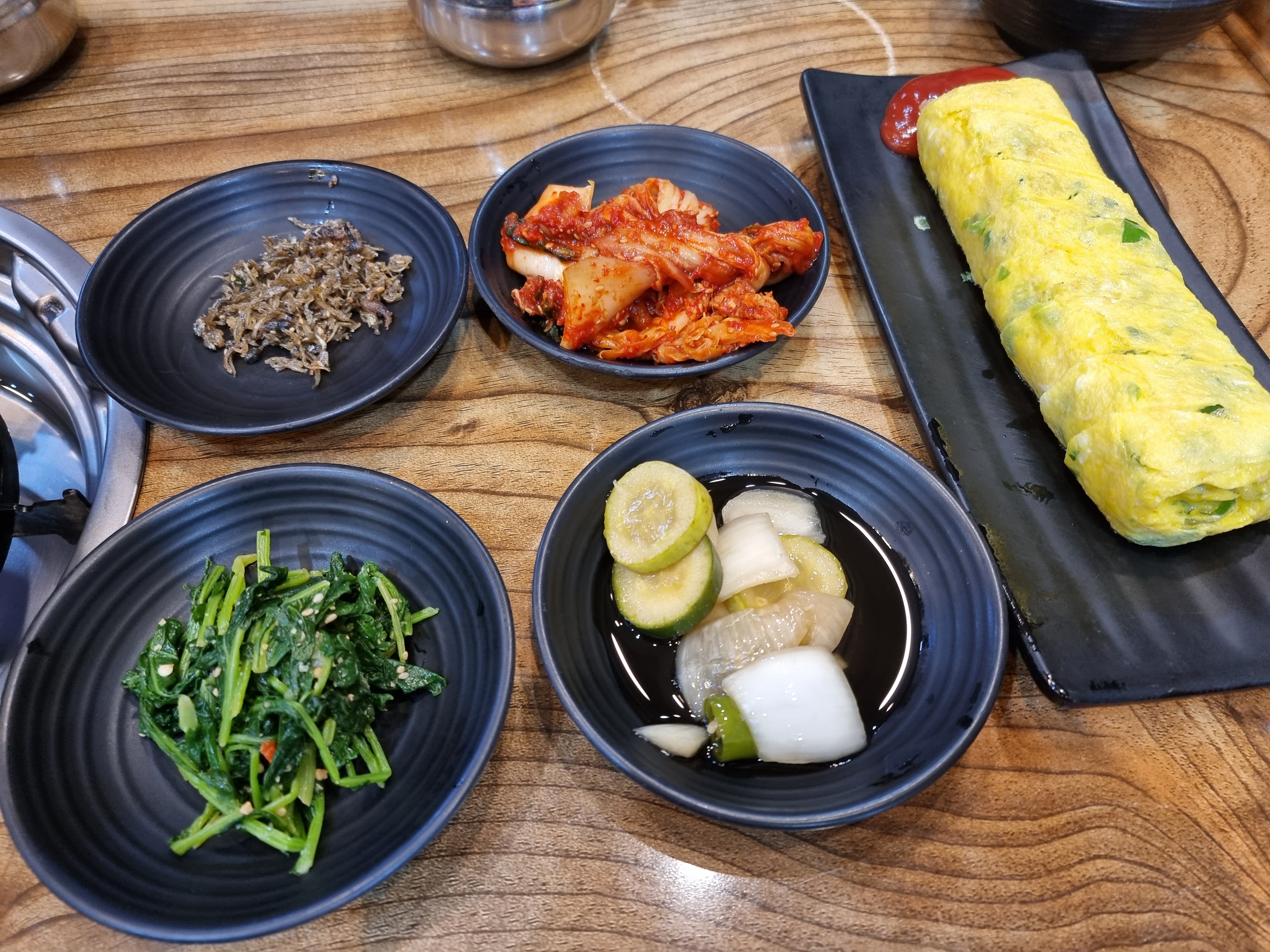 기본 반찬들과 주문한 계란말이입니다 ~