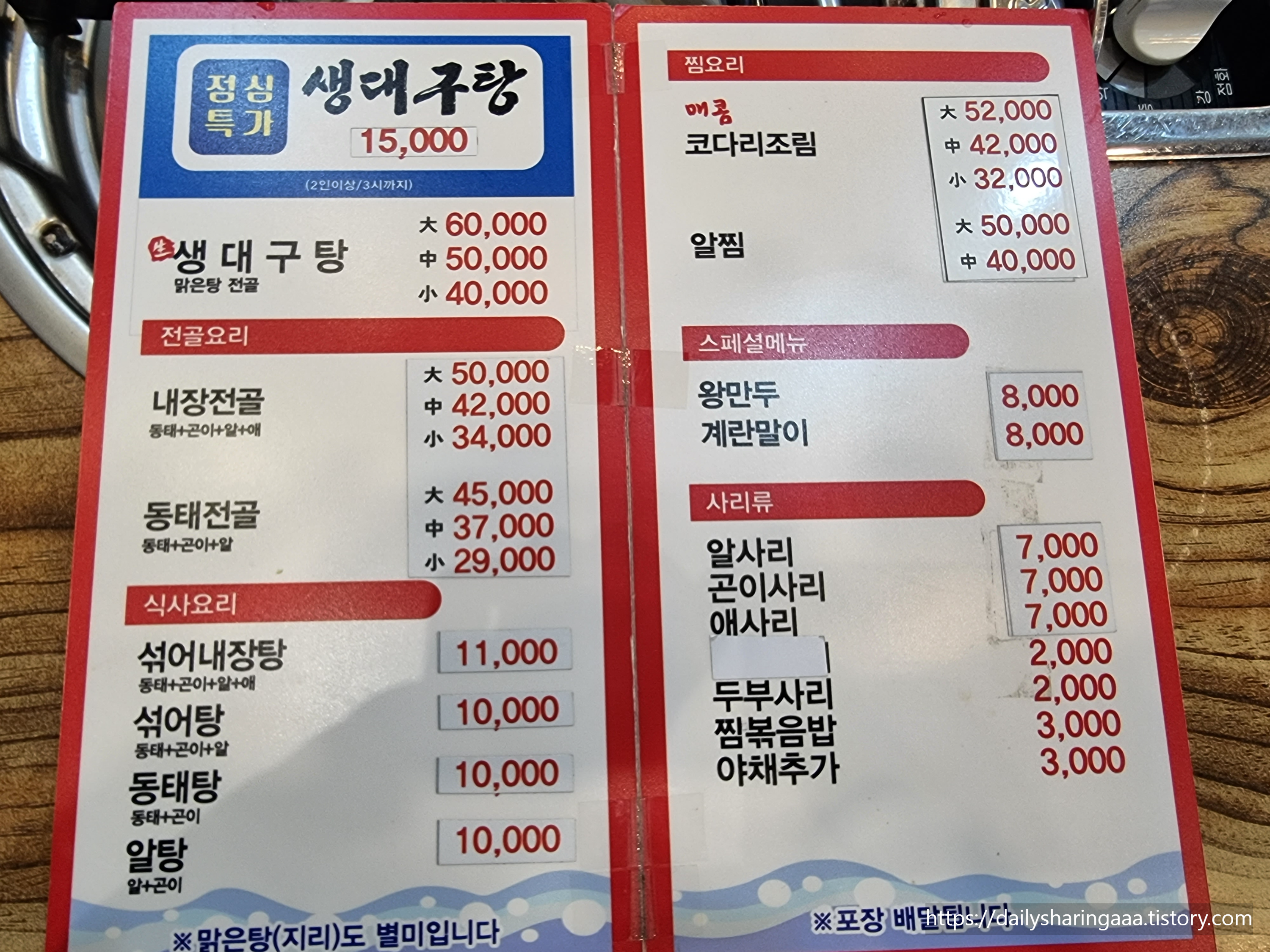 상호 : 바다뚝배기동태탕