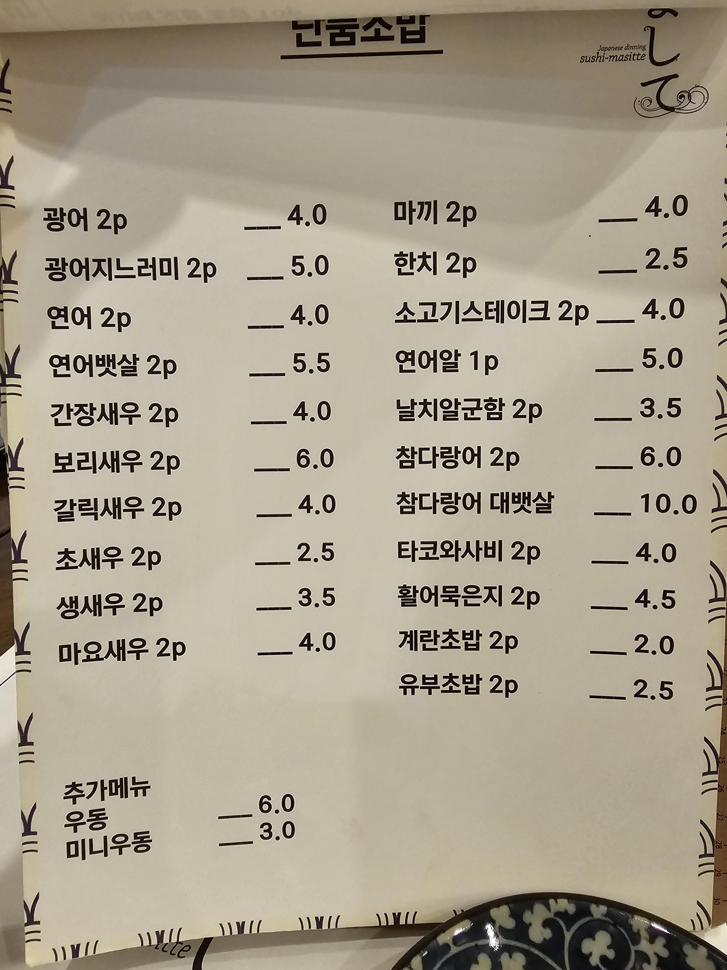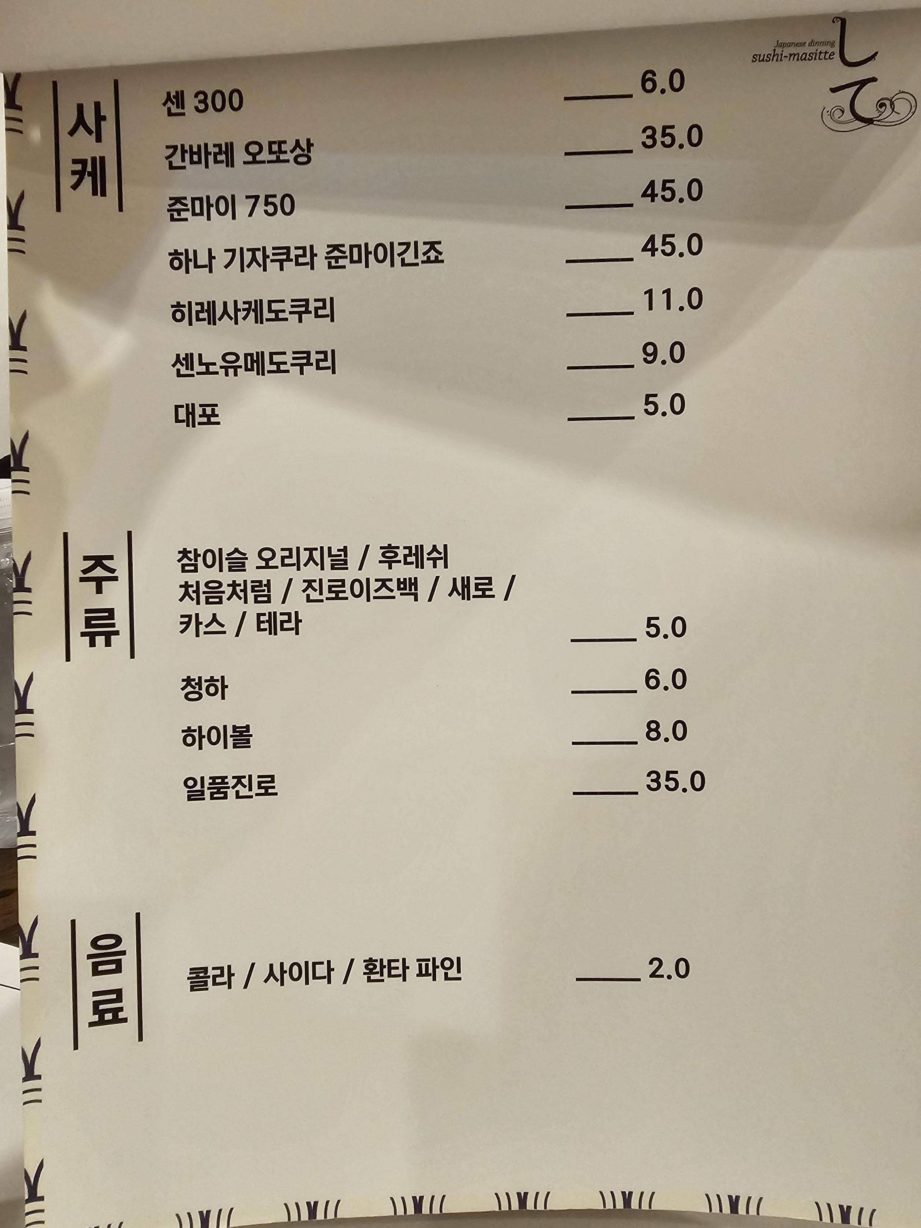 스시마시떼 청라점 메뉴판입니다 ~