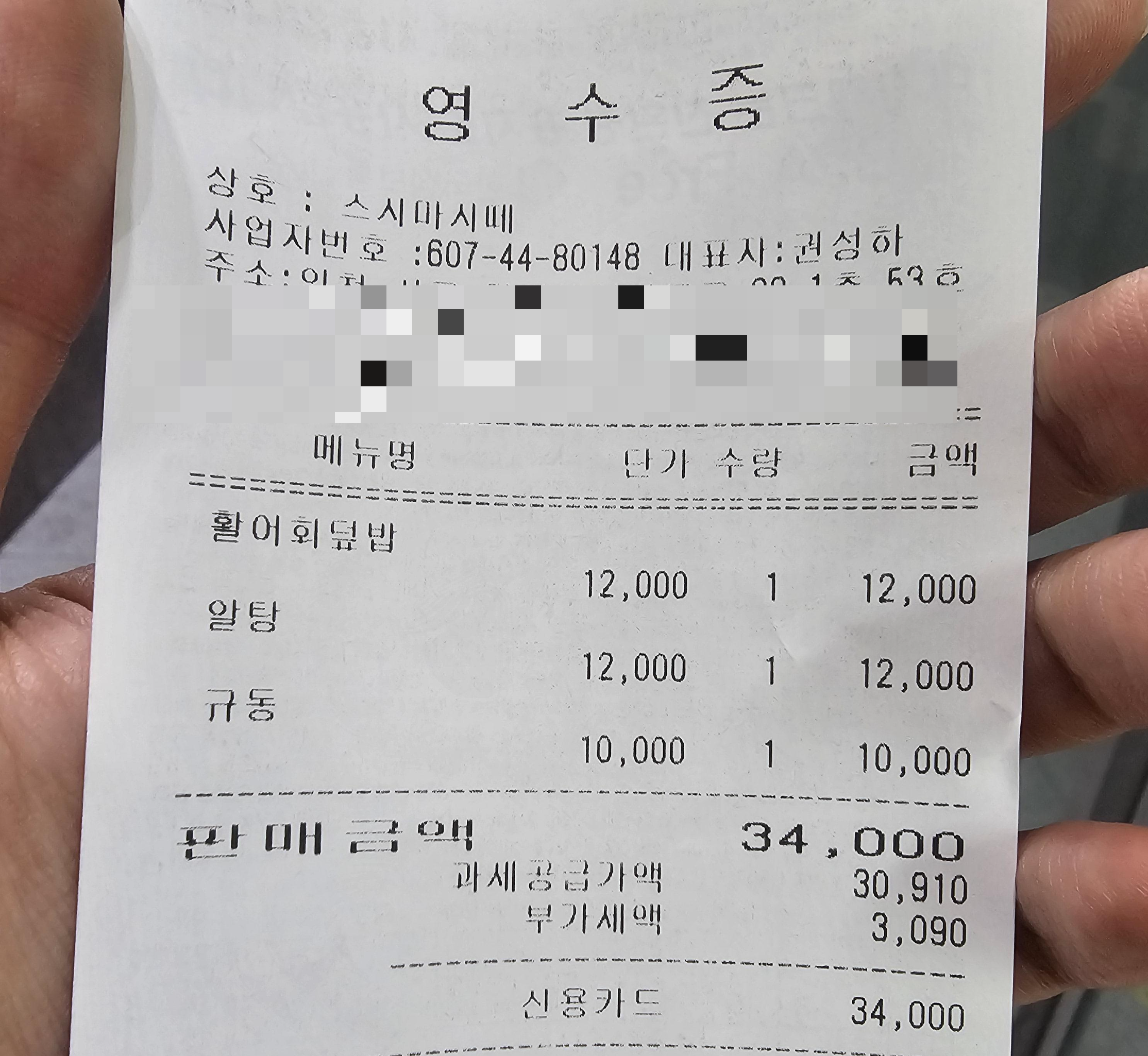 마지막 영수증 사진입니다 ~