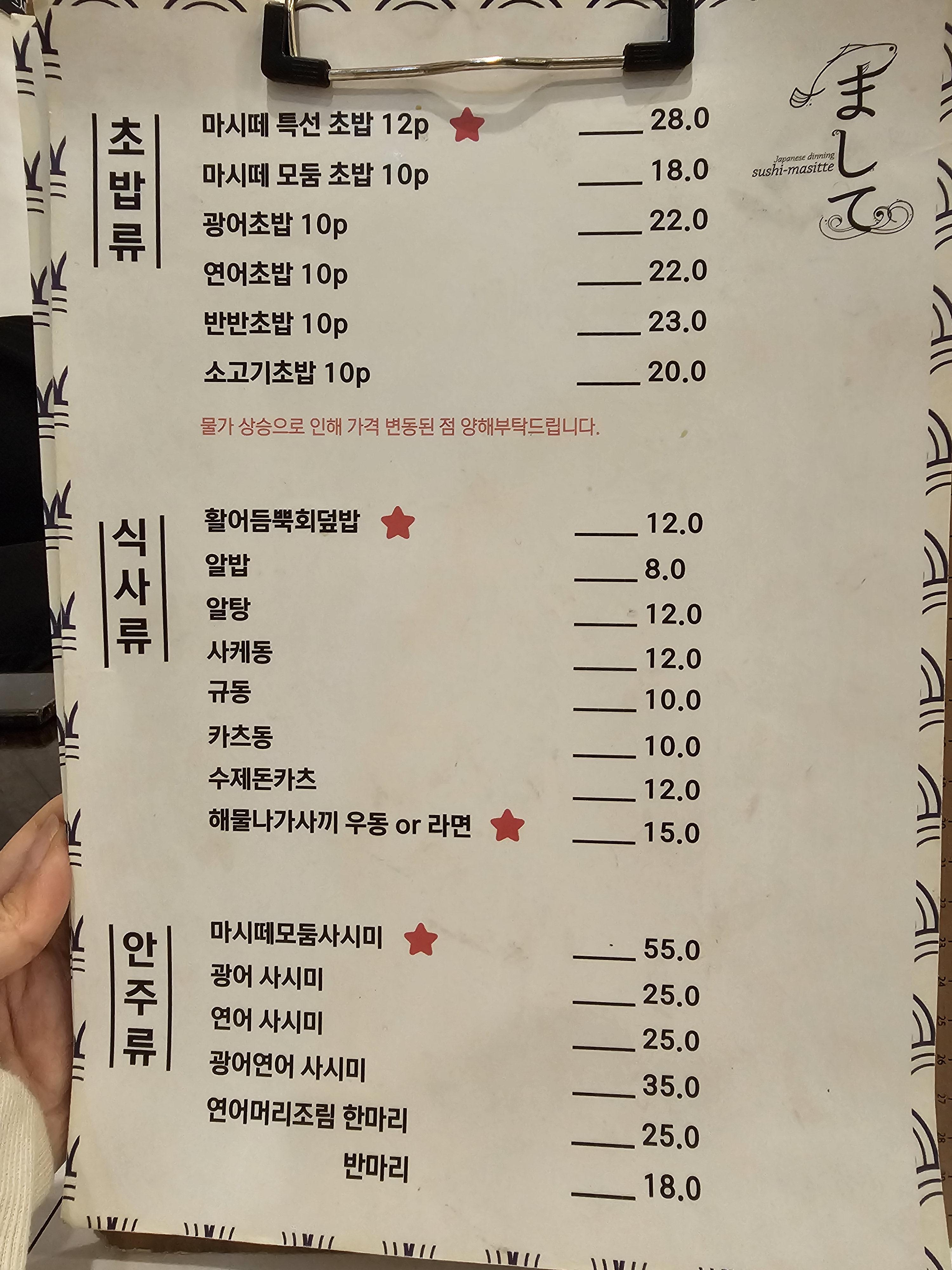 스시마시떼 청라점 메뉴판입니다 ~