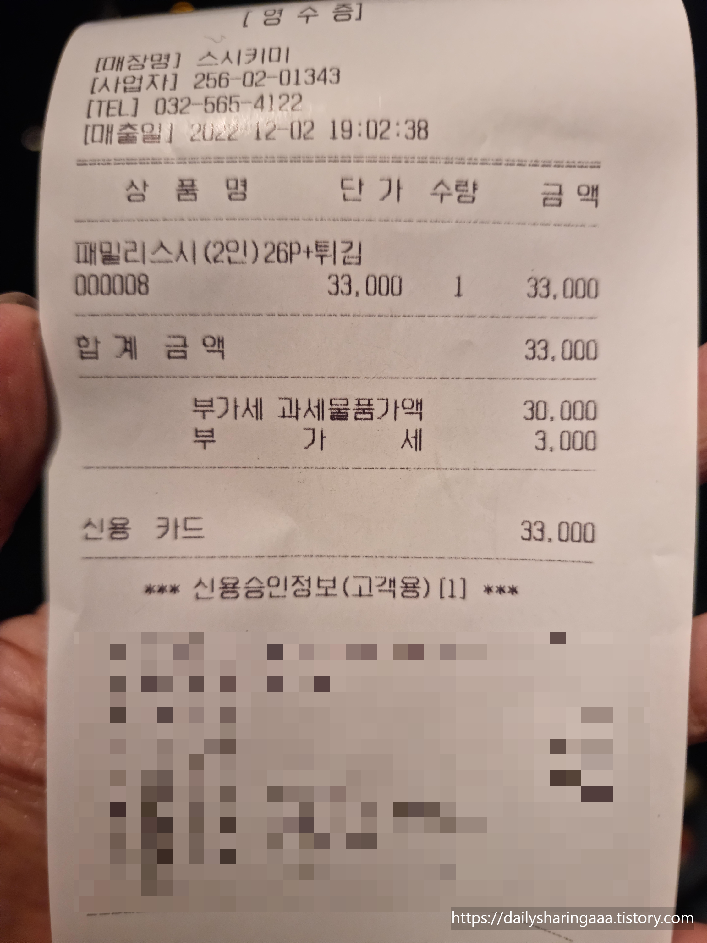 총 3만 3천원 나왔습니다 ~