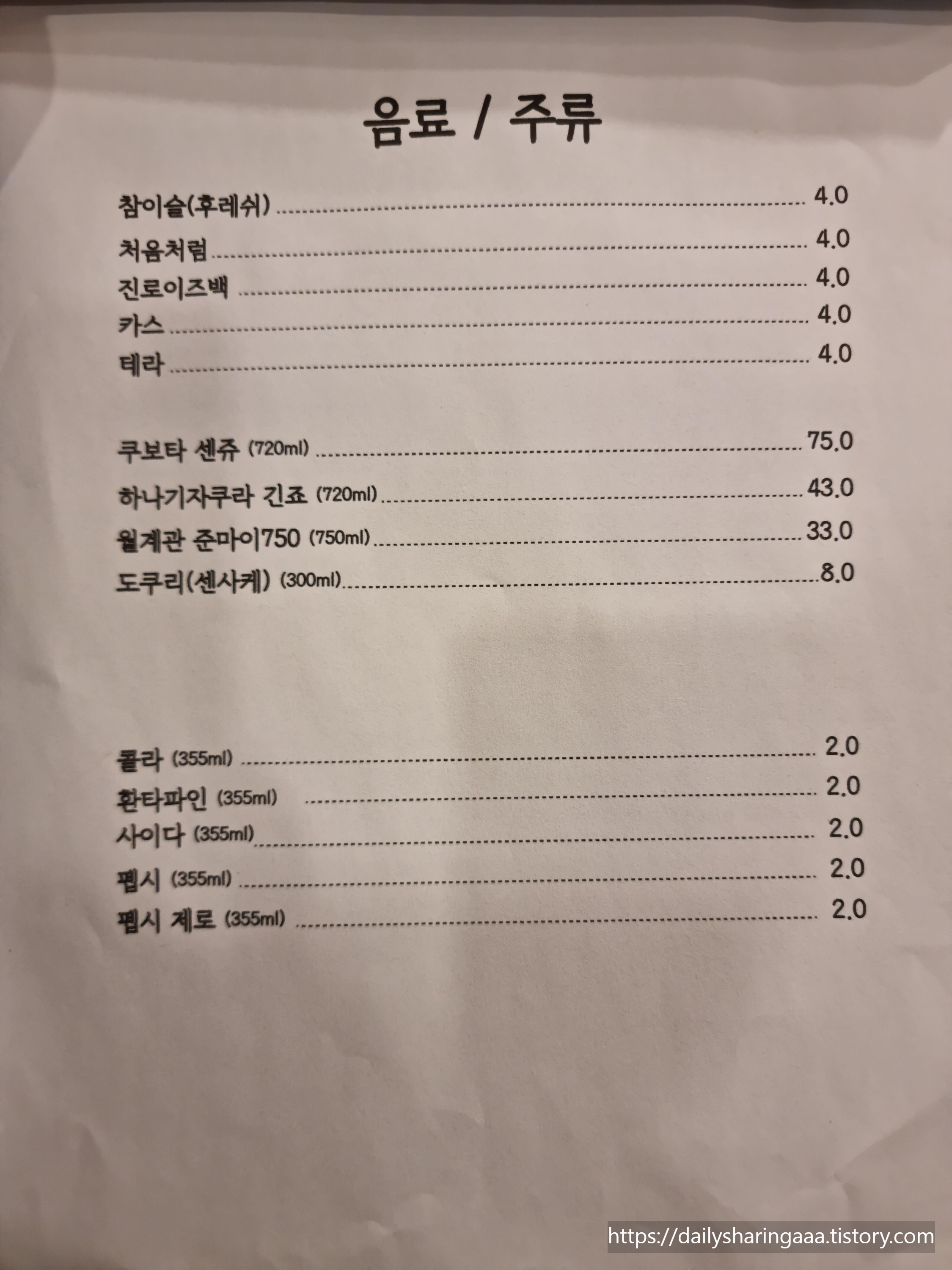 메뉴판 입니다 ~