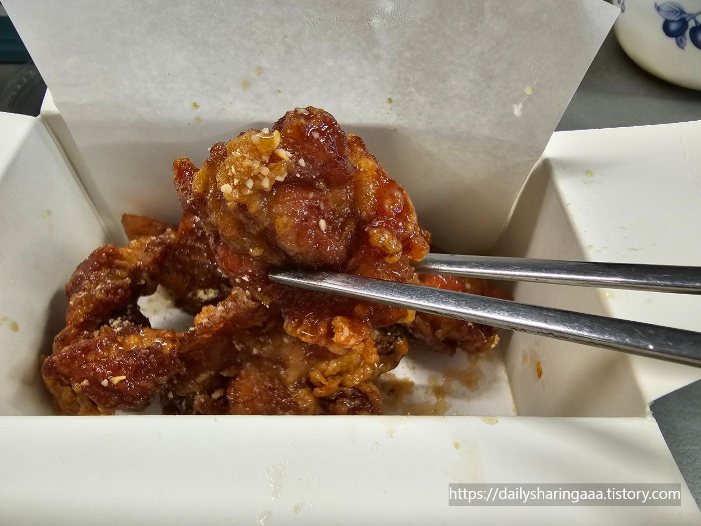 닭강정 맛은 겉은 바삭하고 속 살은 부드러운