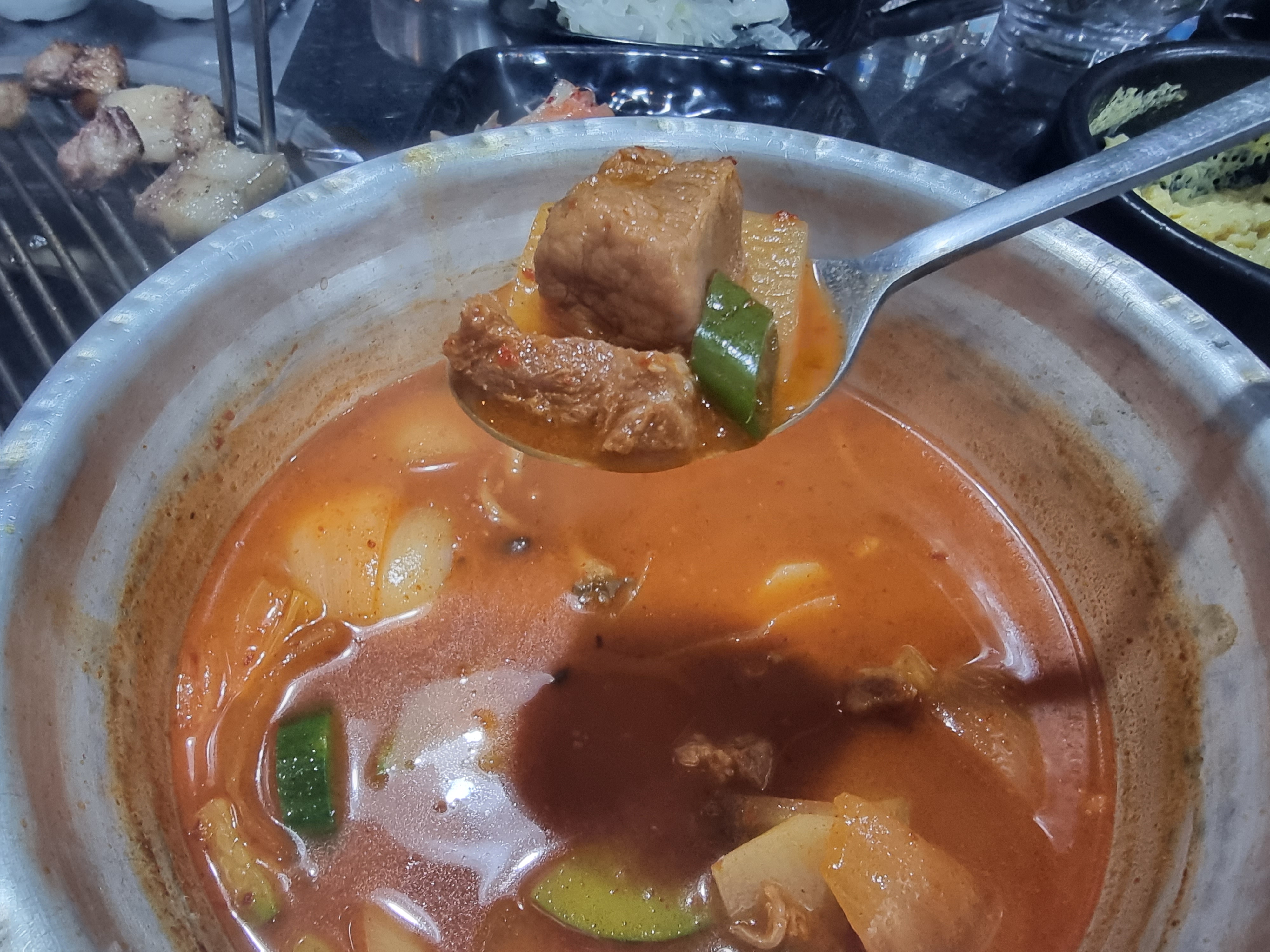 고기를 먹는 도중 옆 테이블에서 찌개에