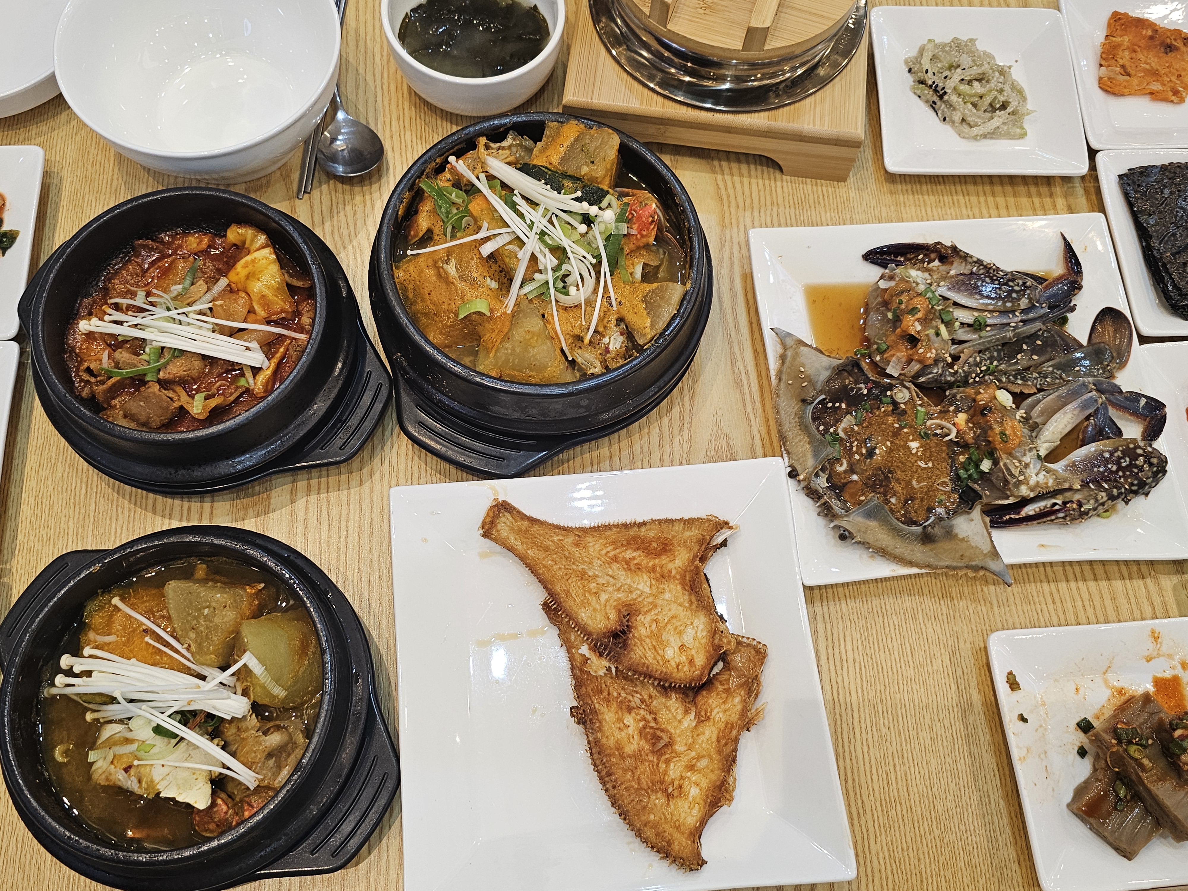나온 음식은 가자미구이, 제육볶음, 꽃게탕