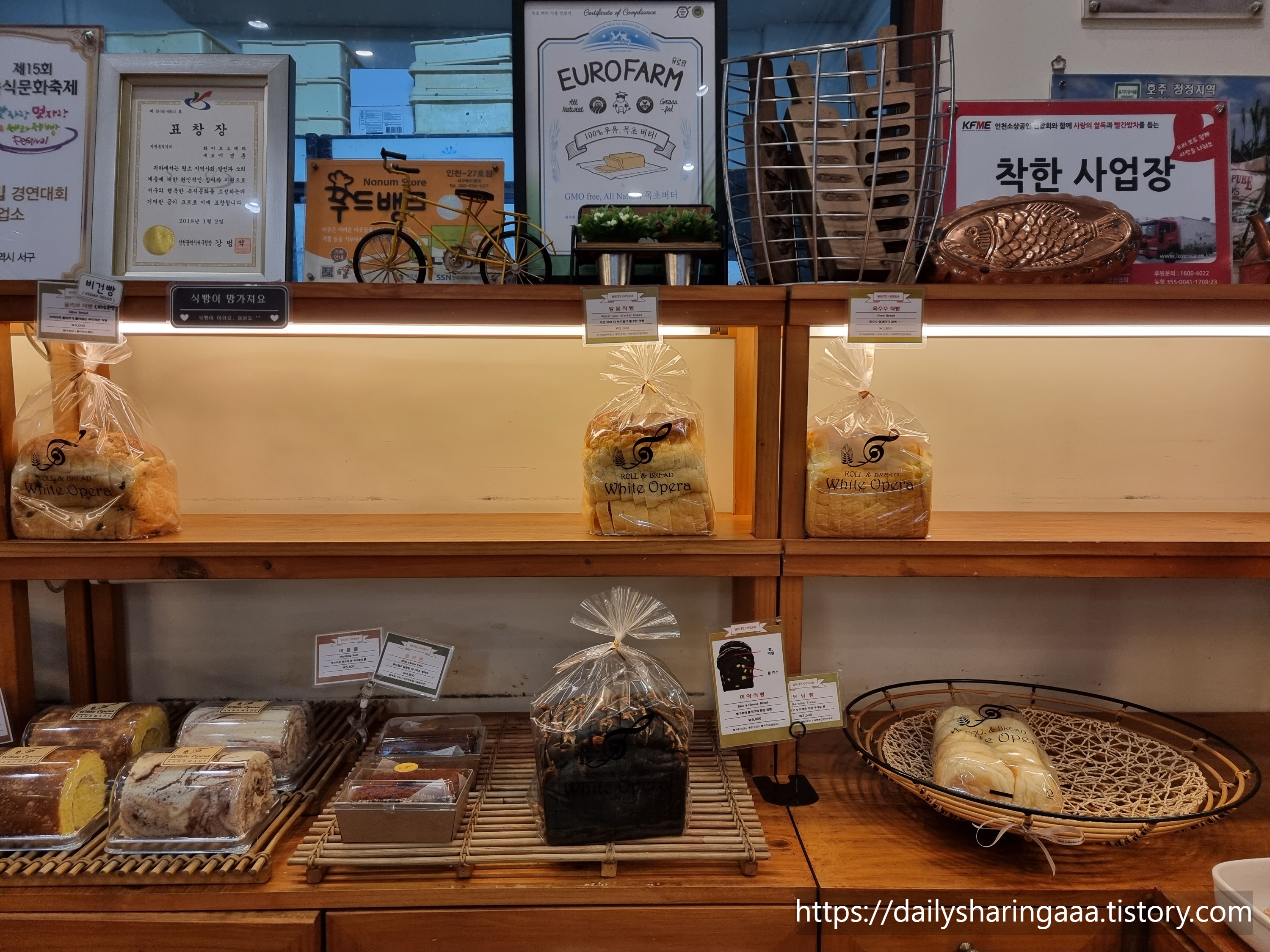 여러 종류의 빵들이 있습니다 ~