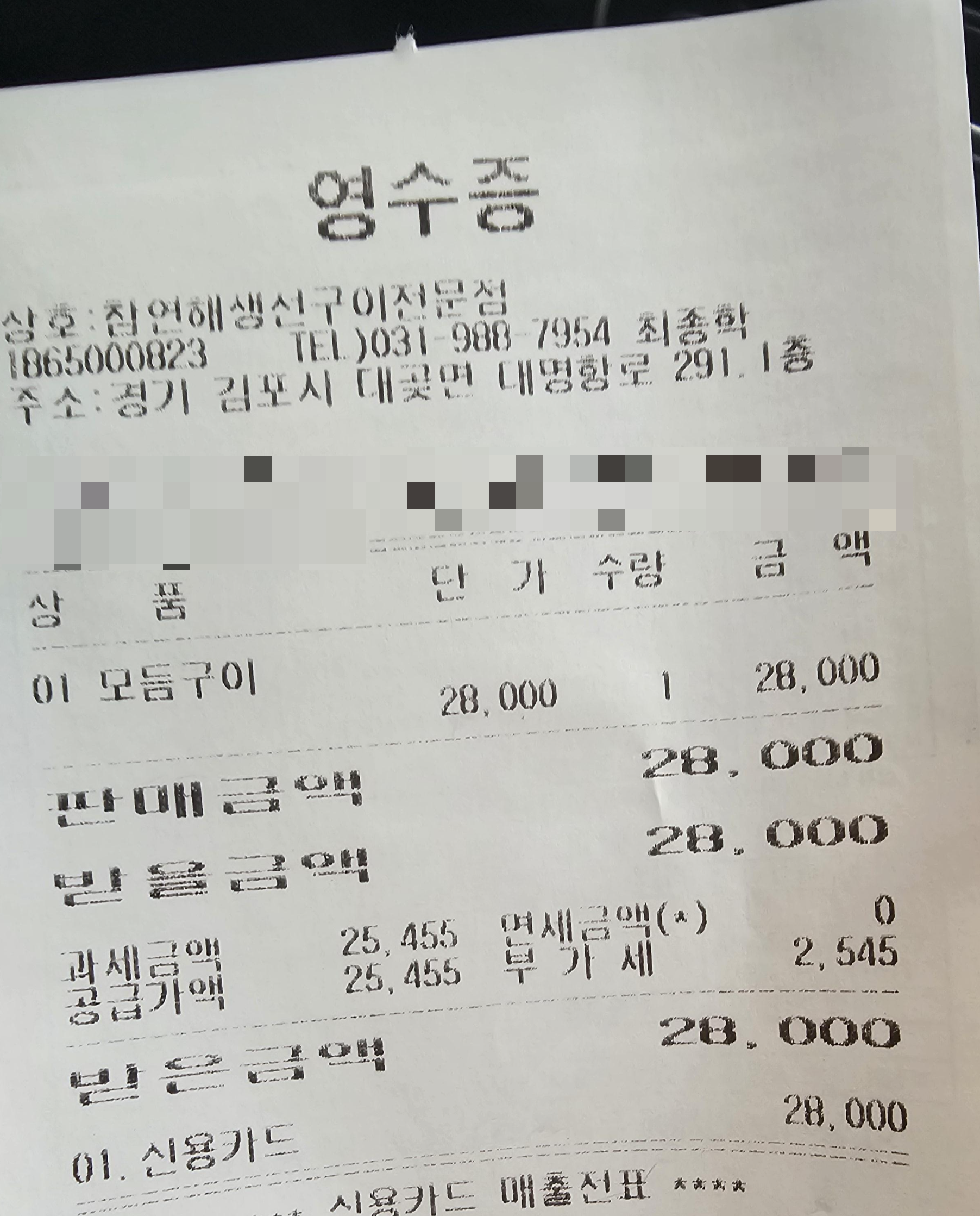 모둠구이 1 해서 총 2만 8천 원 나왔고