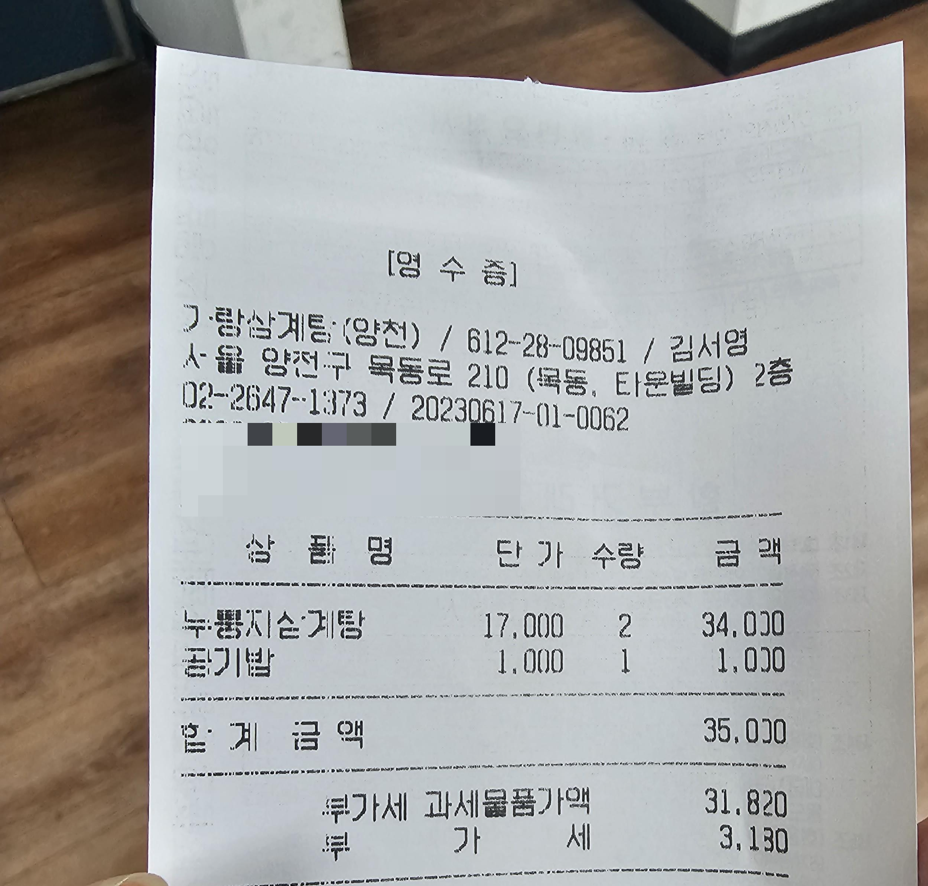 마지막 영수증 사진입니다 ~